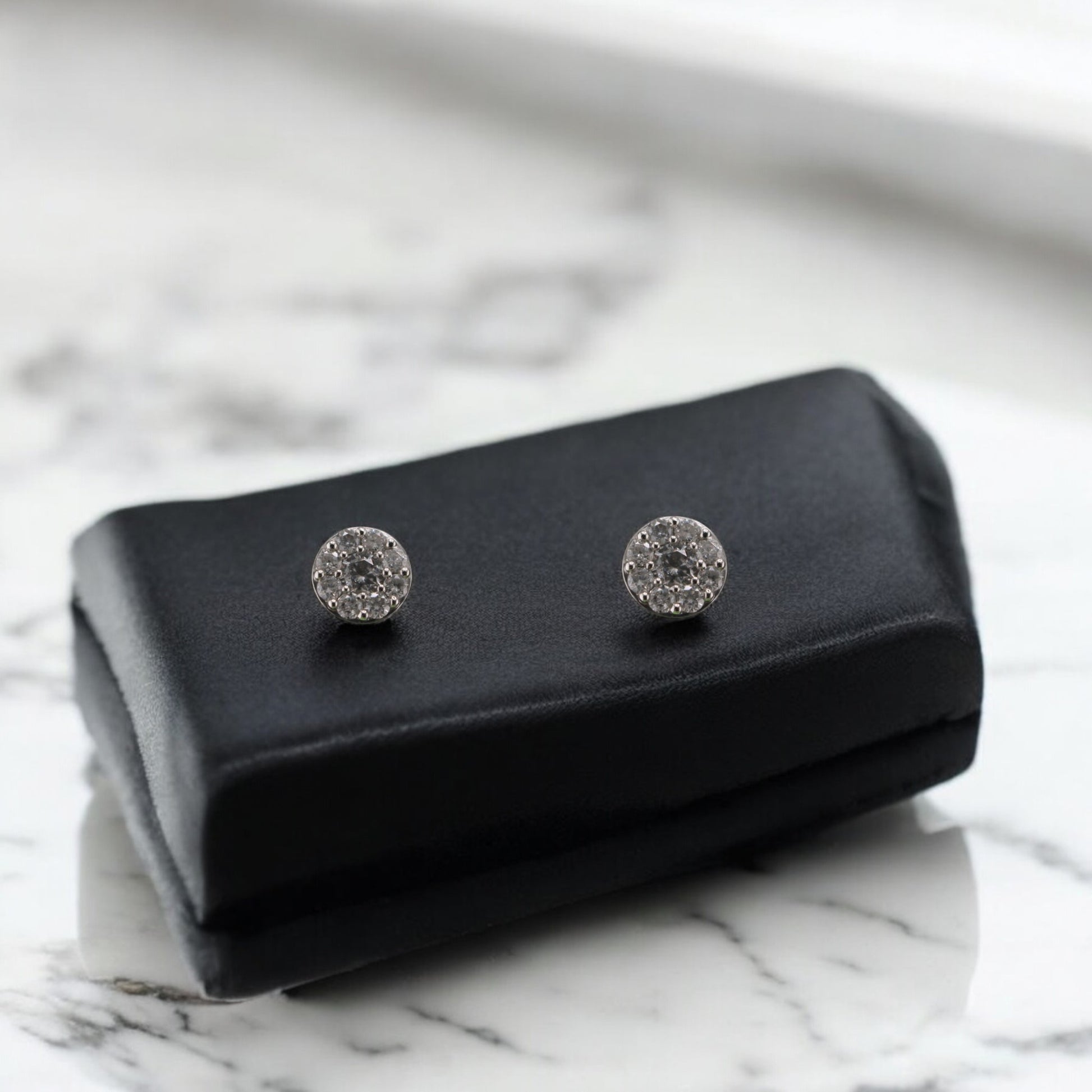 10KT White Gold W/ Diamond .75cttw Cluster Round Studs Earrings