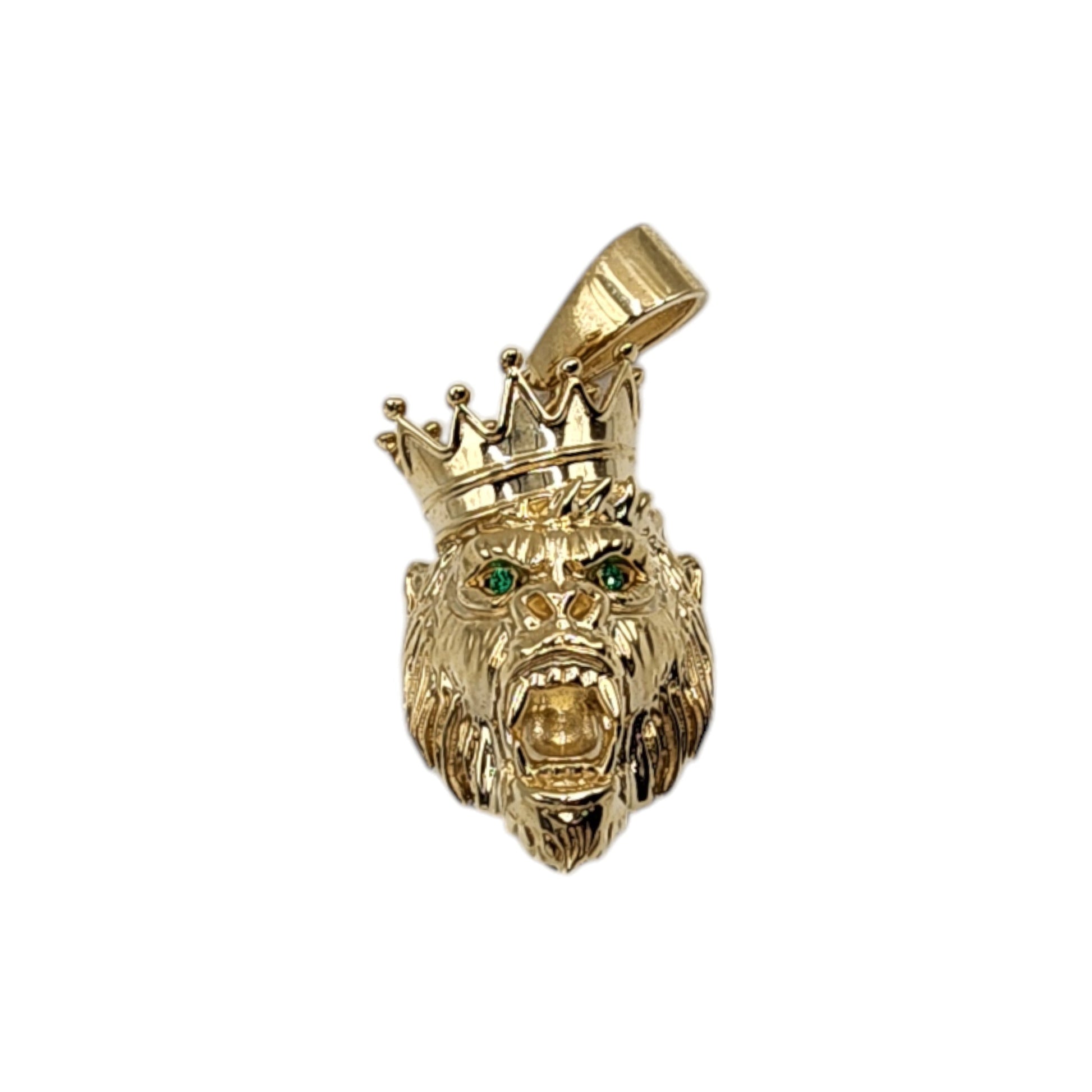 10KT Yellow Gold 7.1g Gorilla with crown W/Green CZ Pendant 47mm