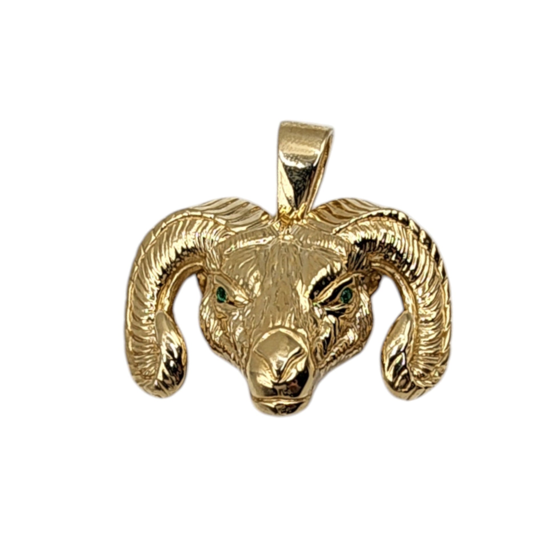 10KT Yellow Gold 7.3g Goat W/Green CZ Pendant 40mm