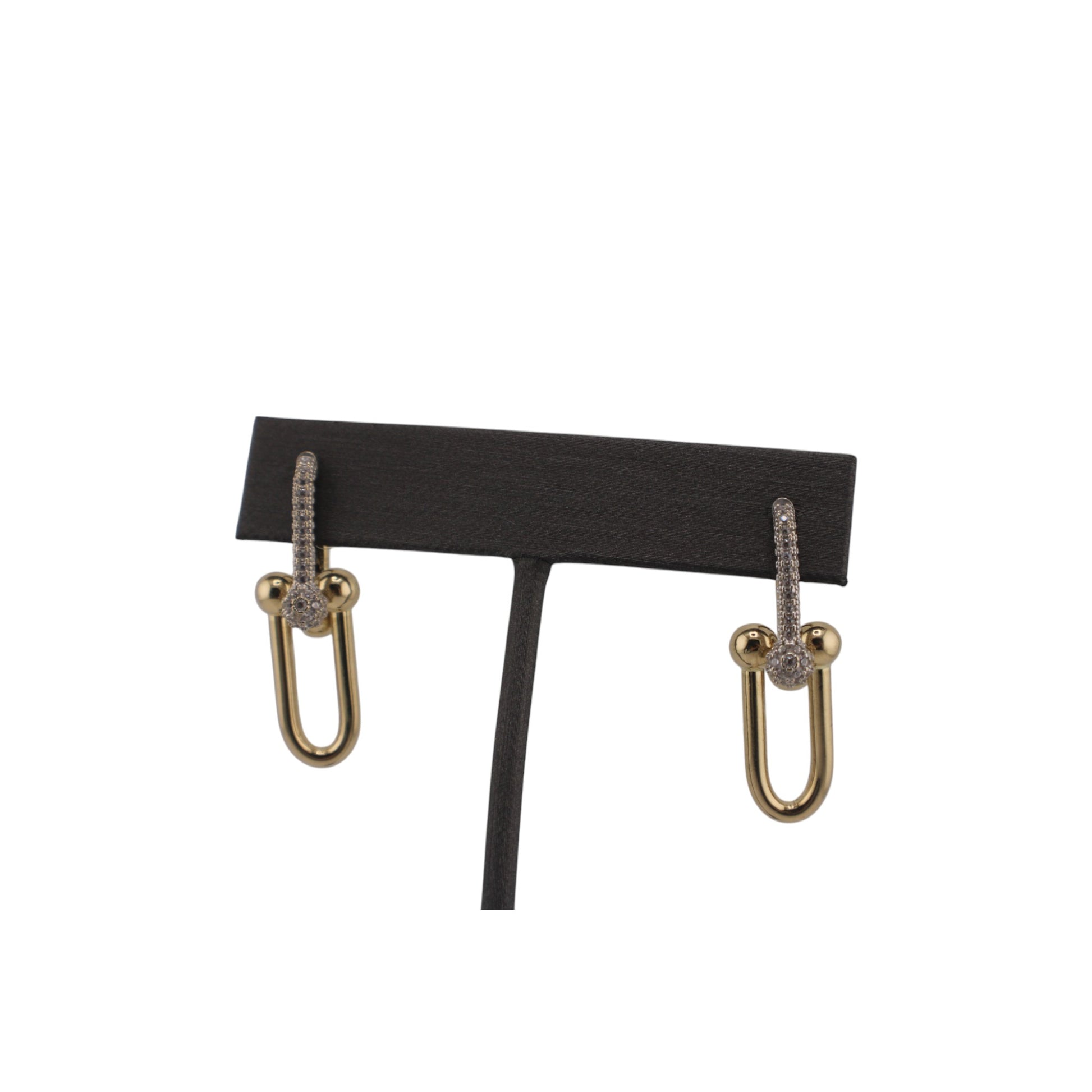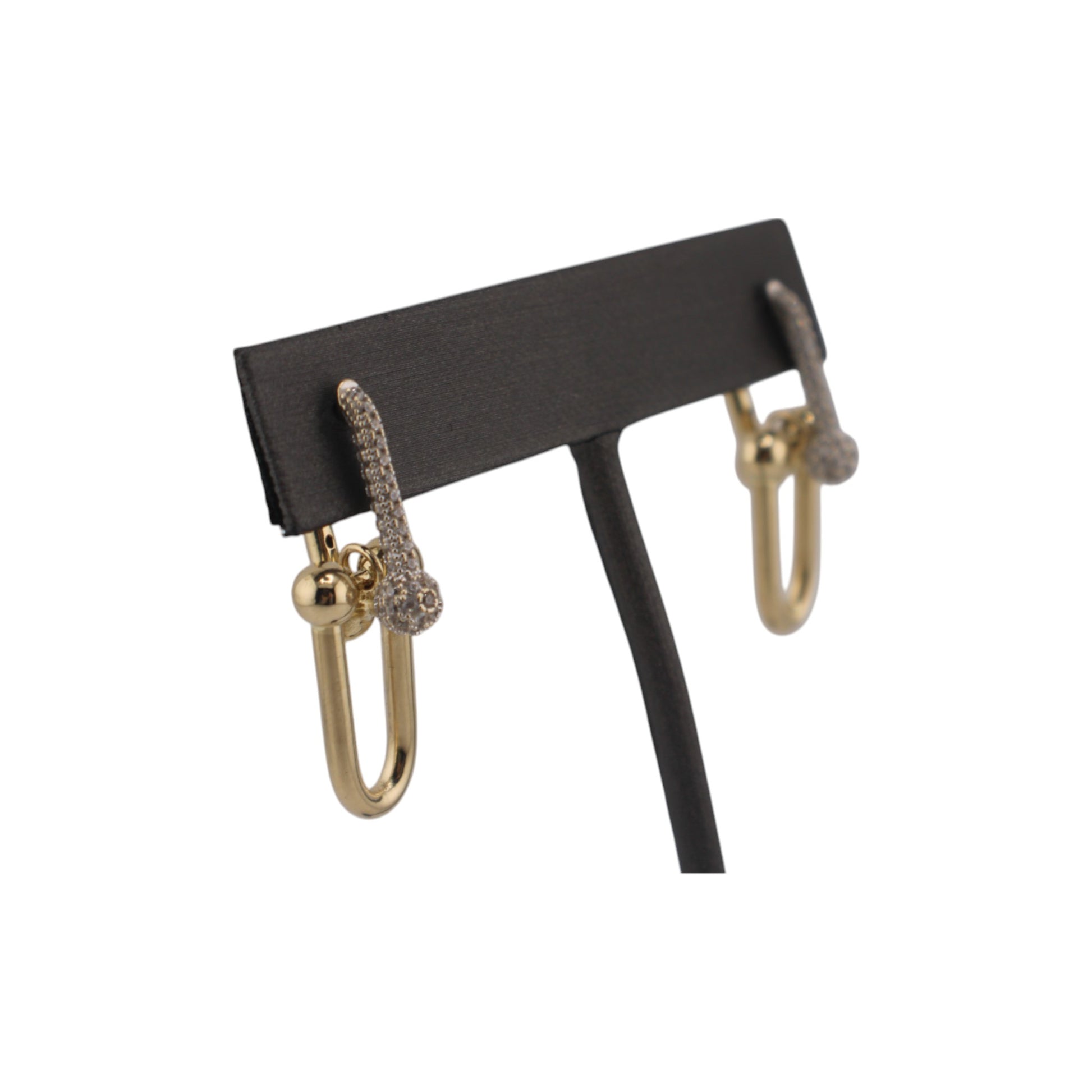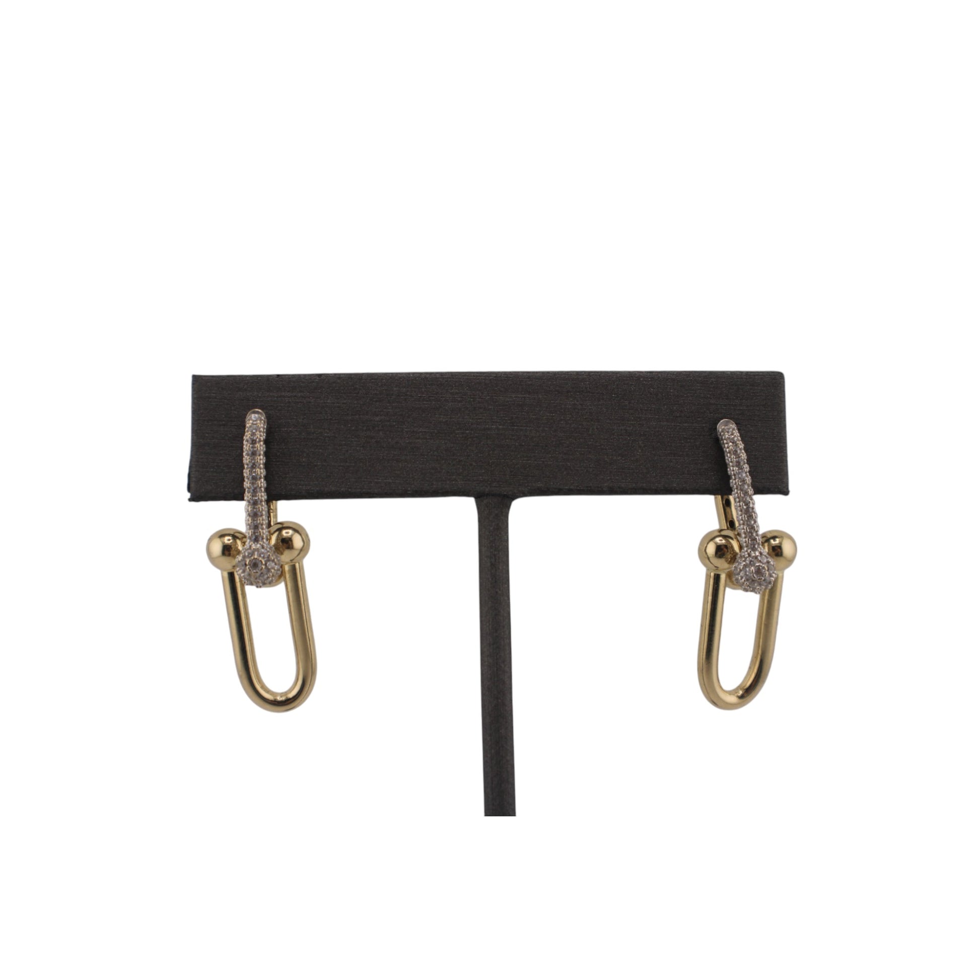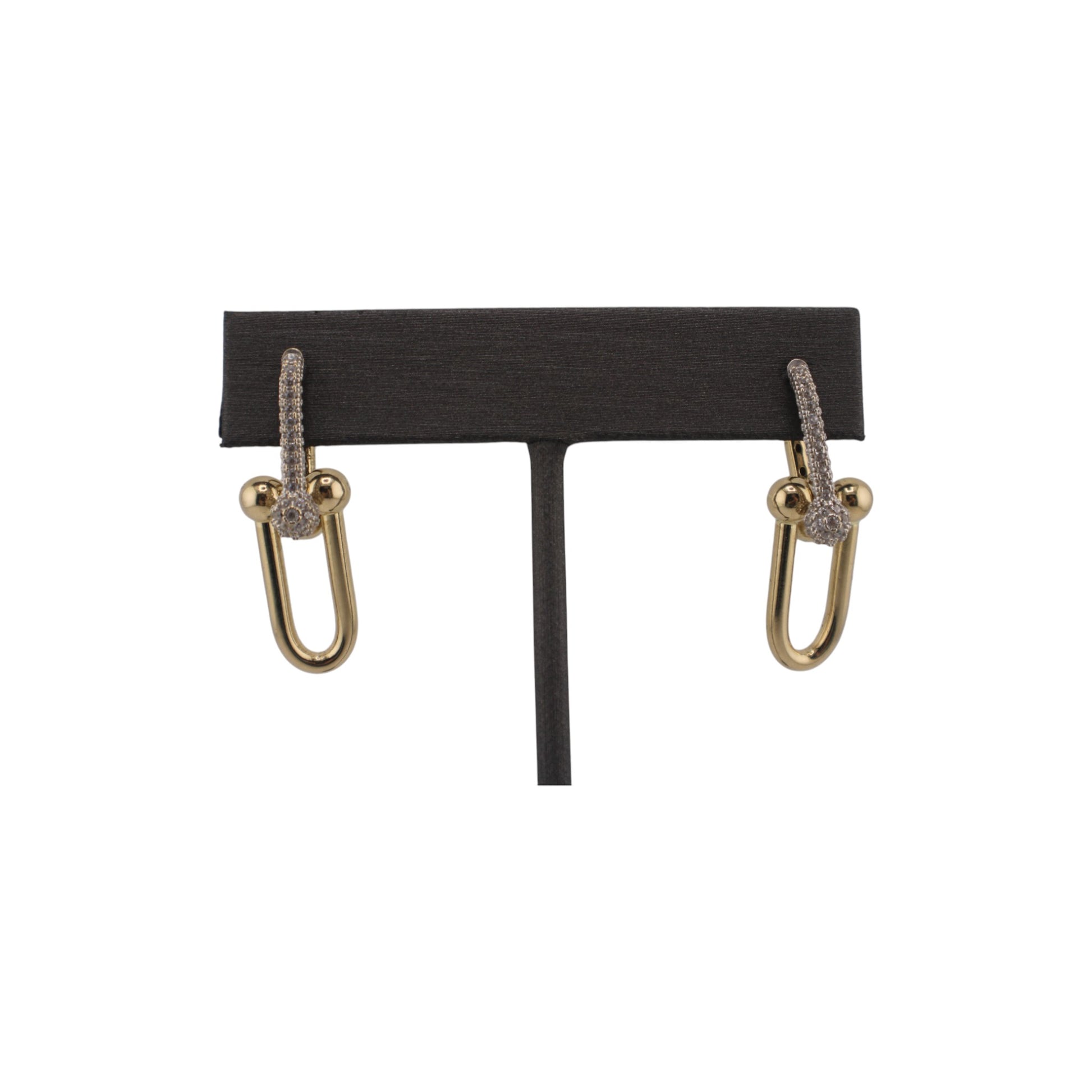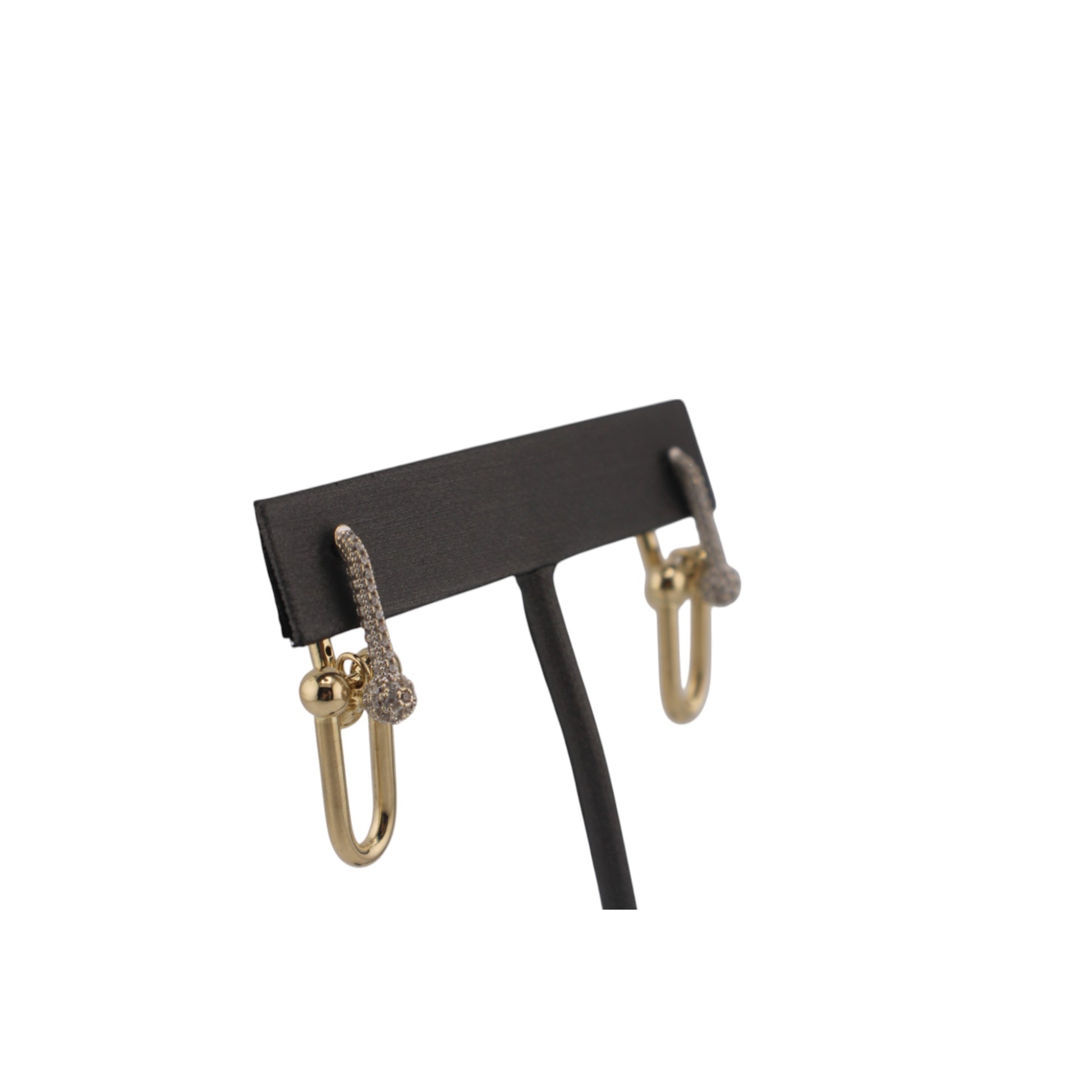 14KT Semi-Solid Yellow Gold Hoops Fancy Style 30.mm W/ White Cz Earrings