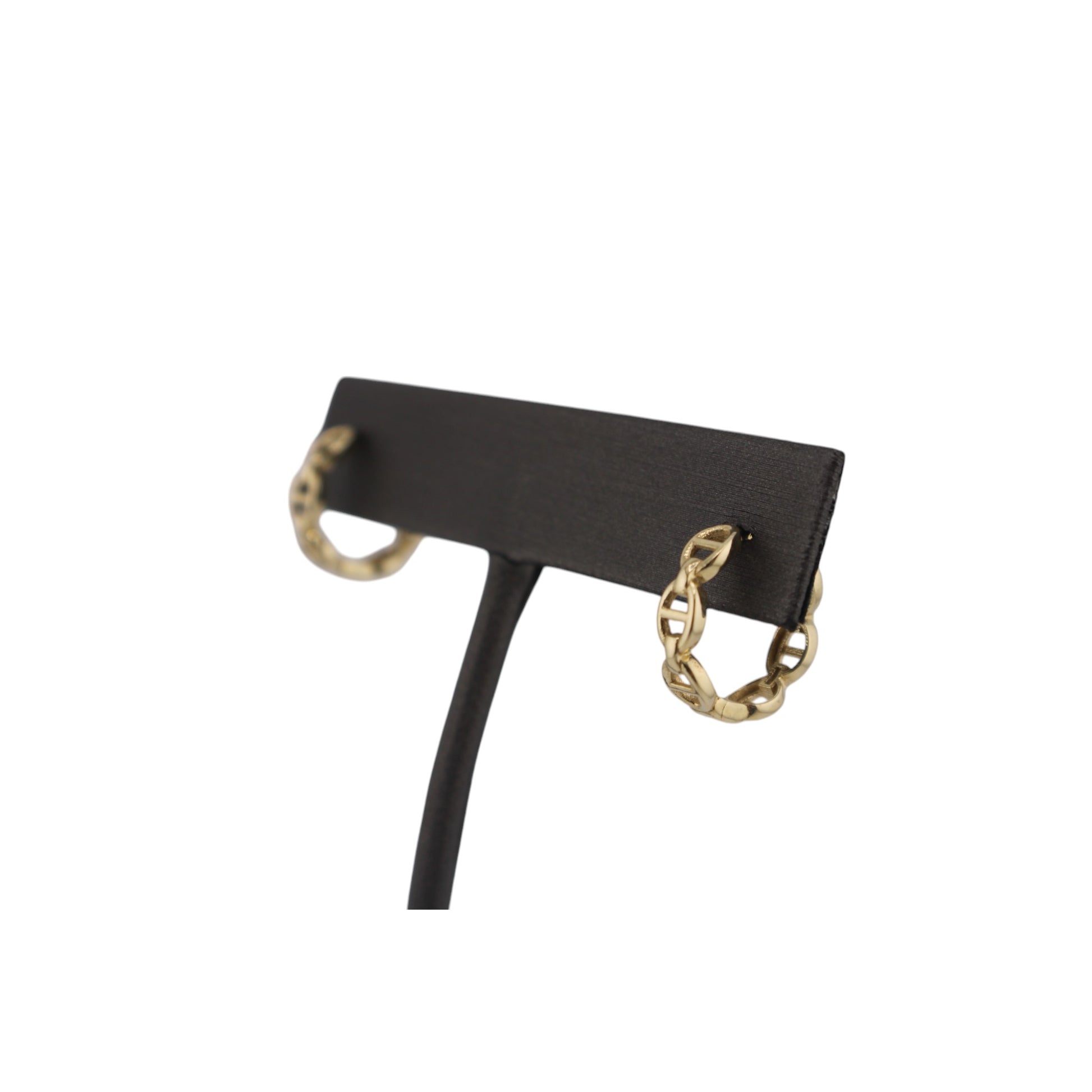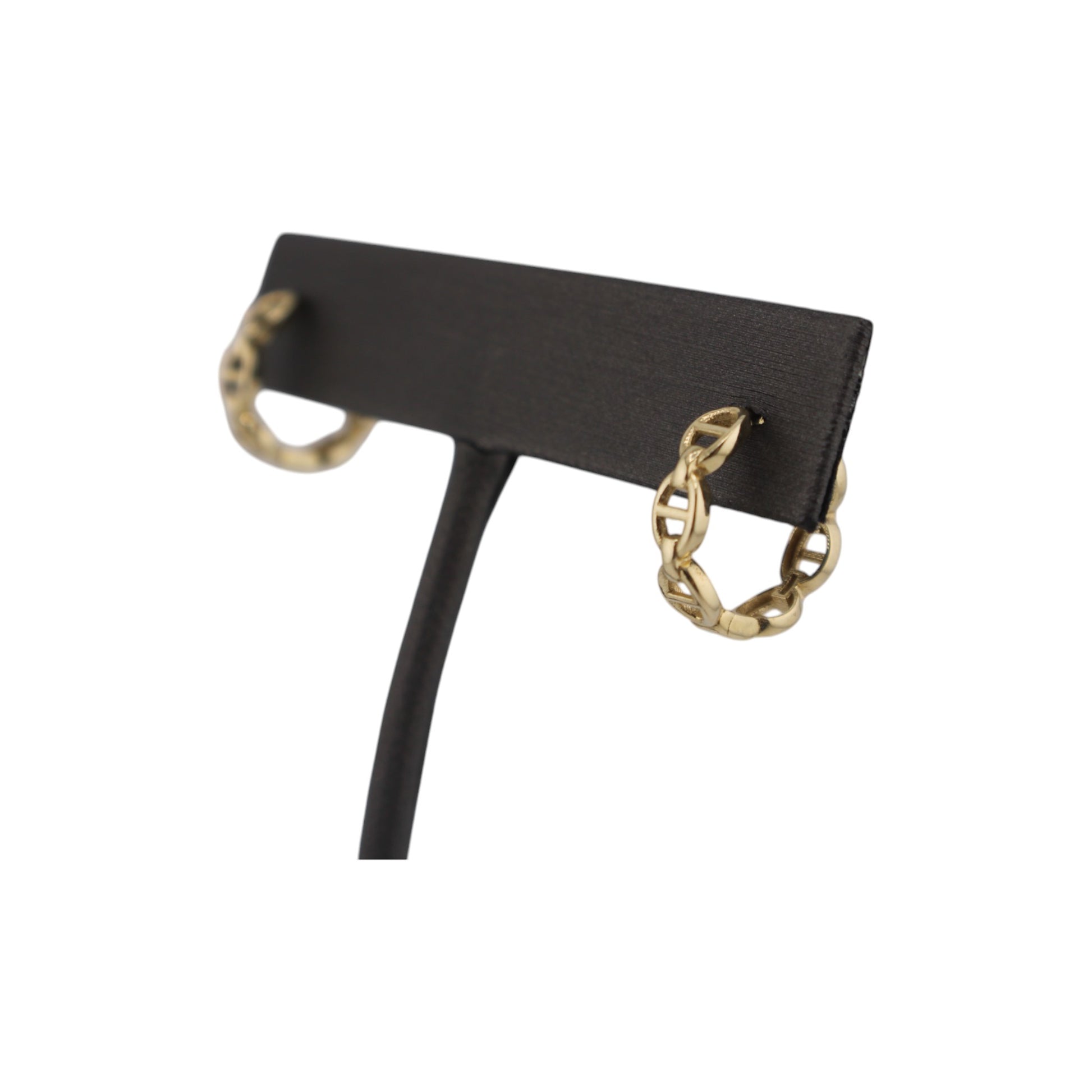 14KT Solid Yellow Gold Hoops H-Fancy Style 12.mm Earrings