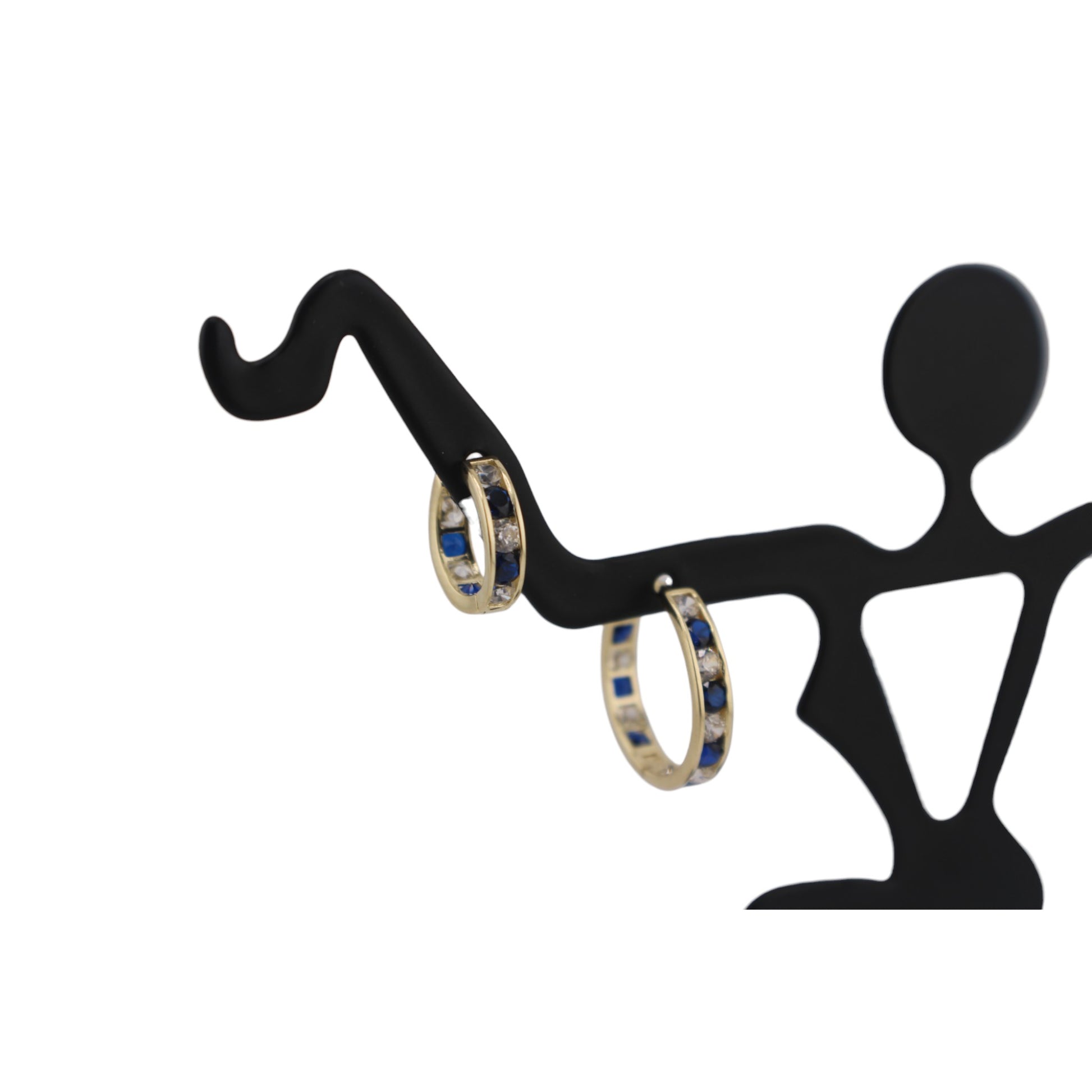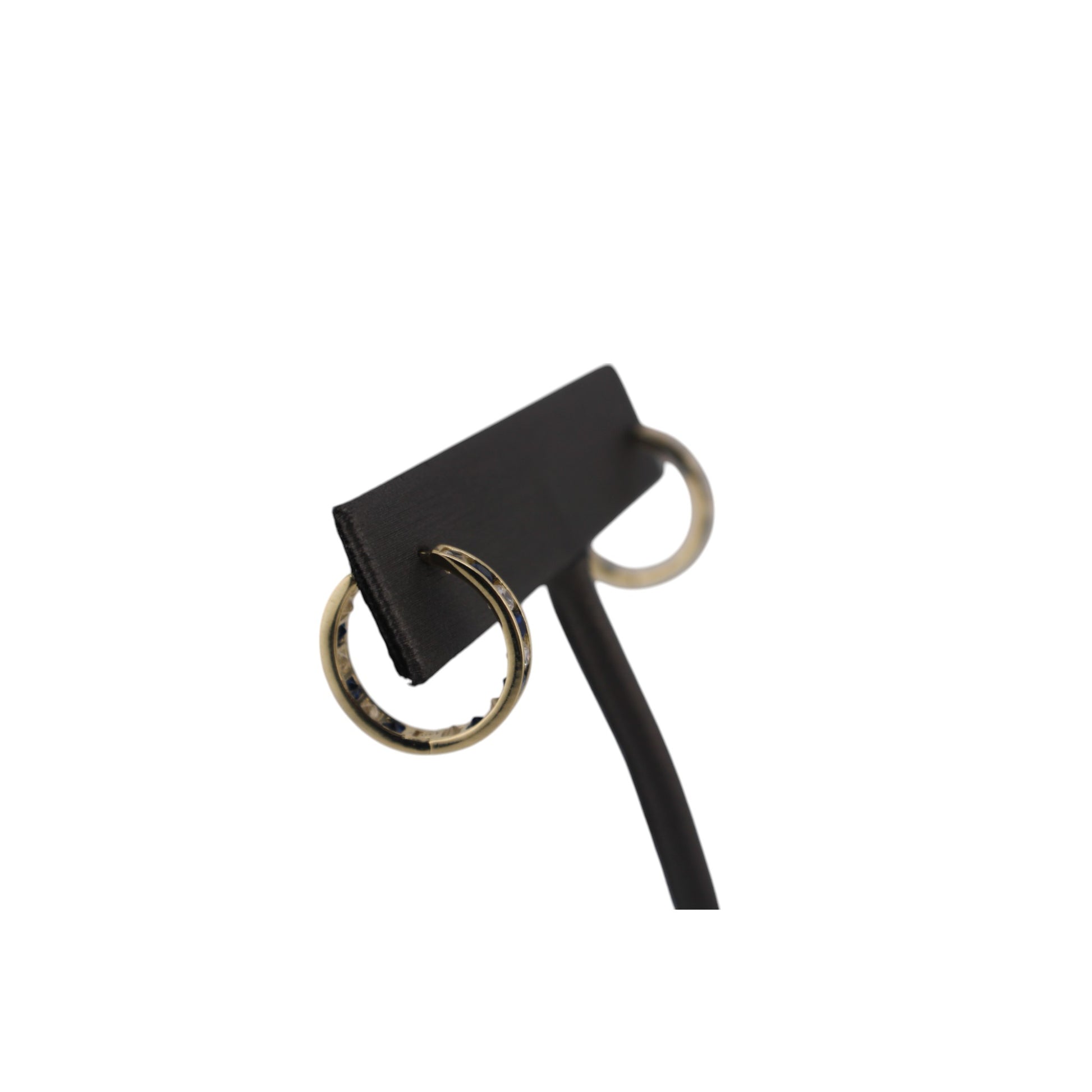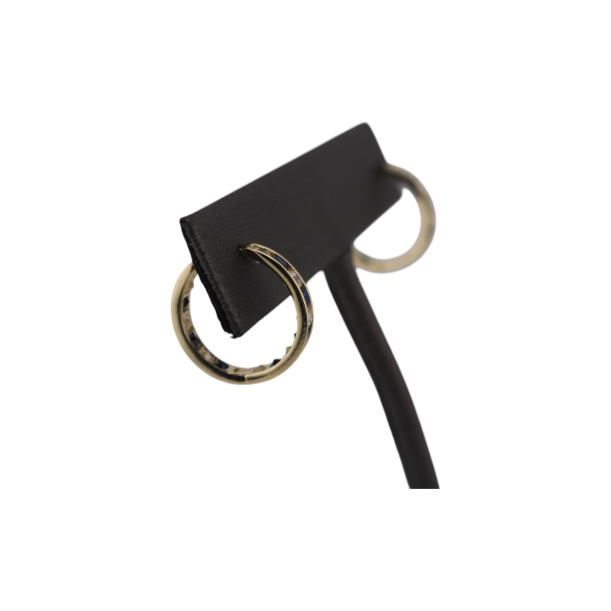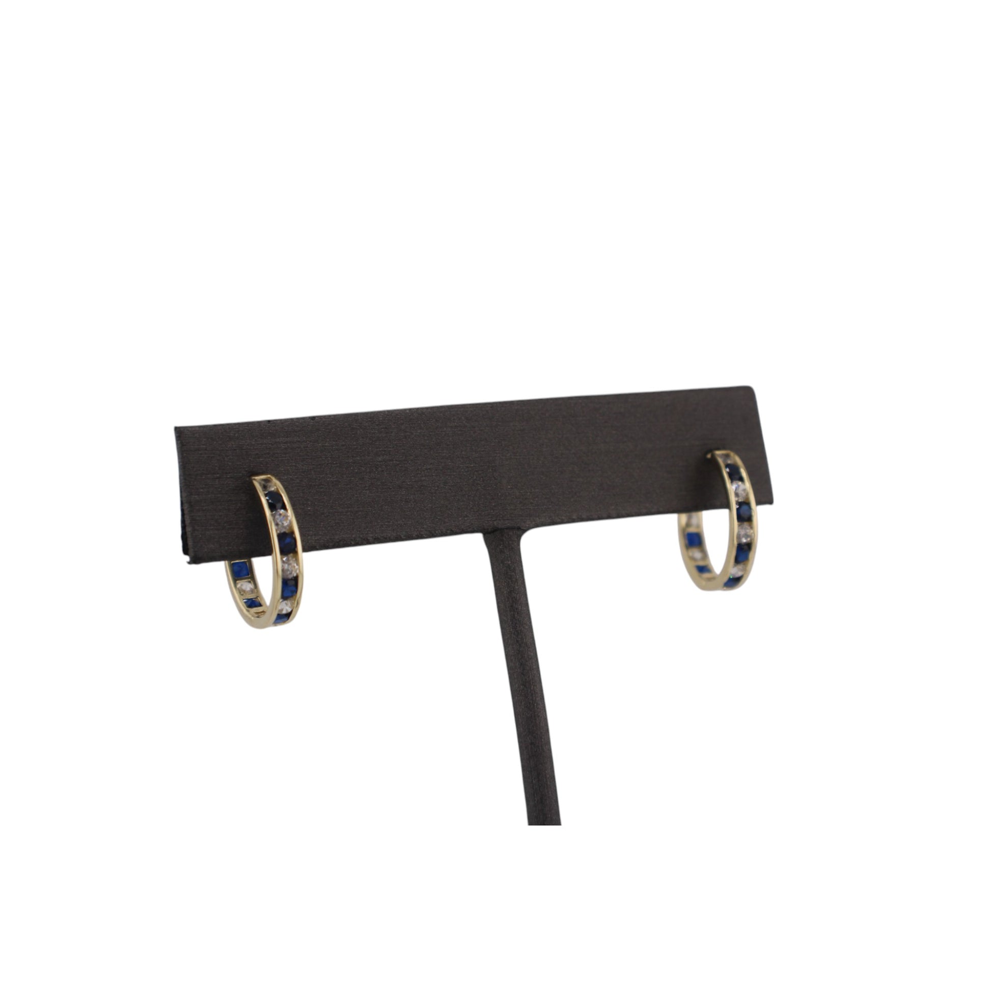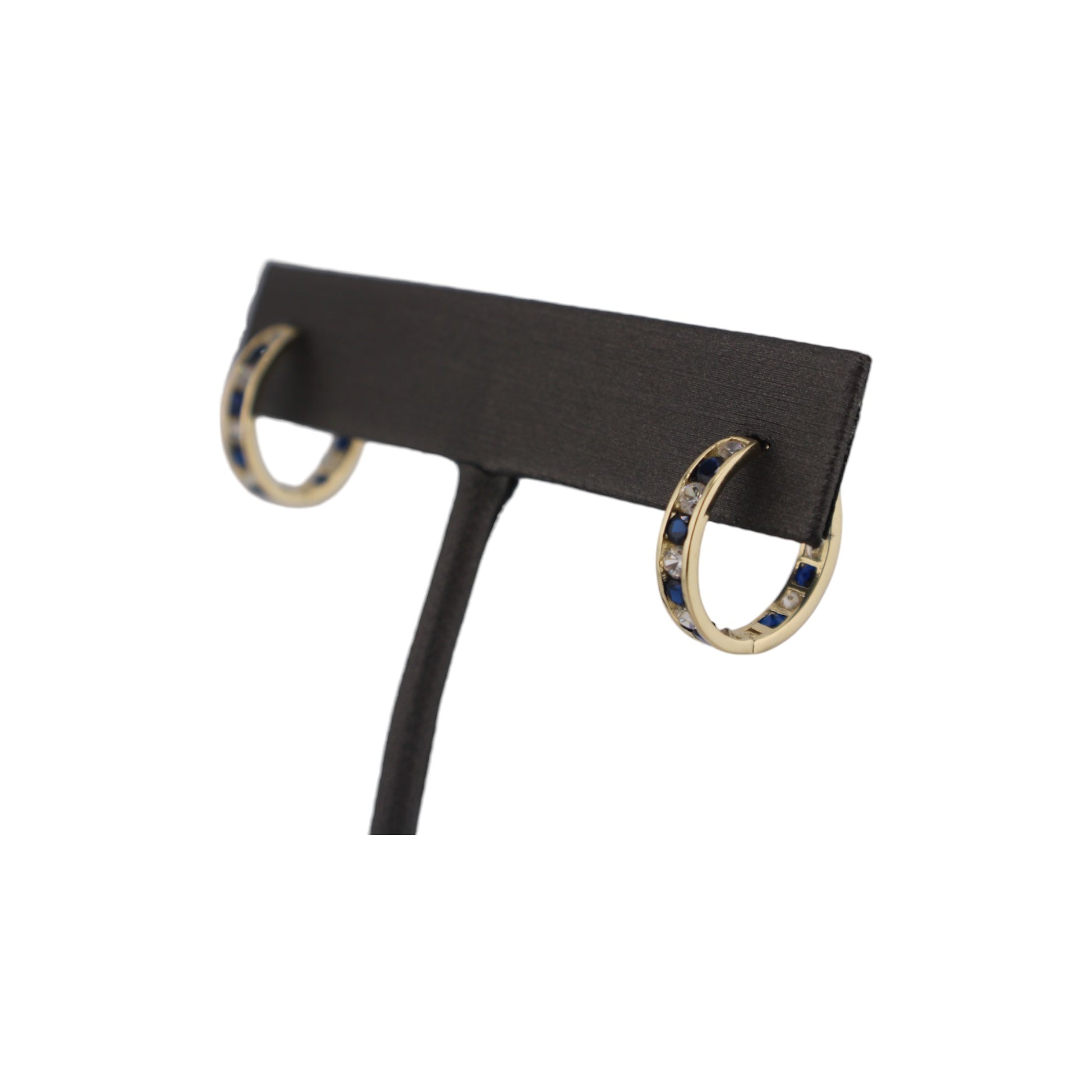 14KT Solid Yellow Gold W/ White & Blue Cz Hoops Style Earrings