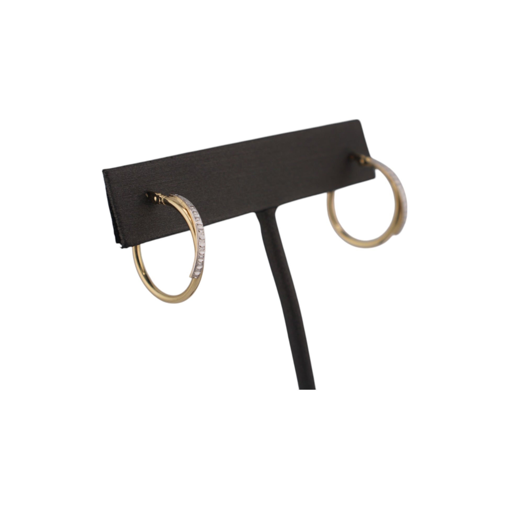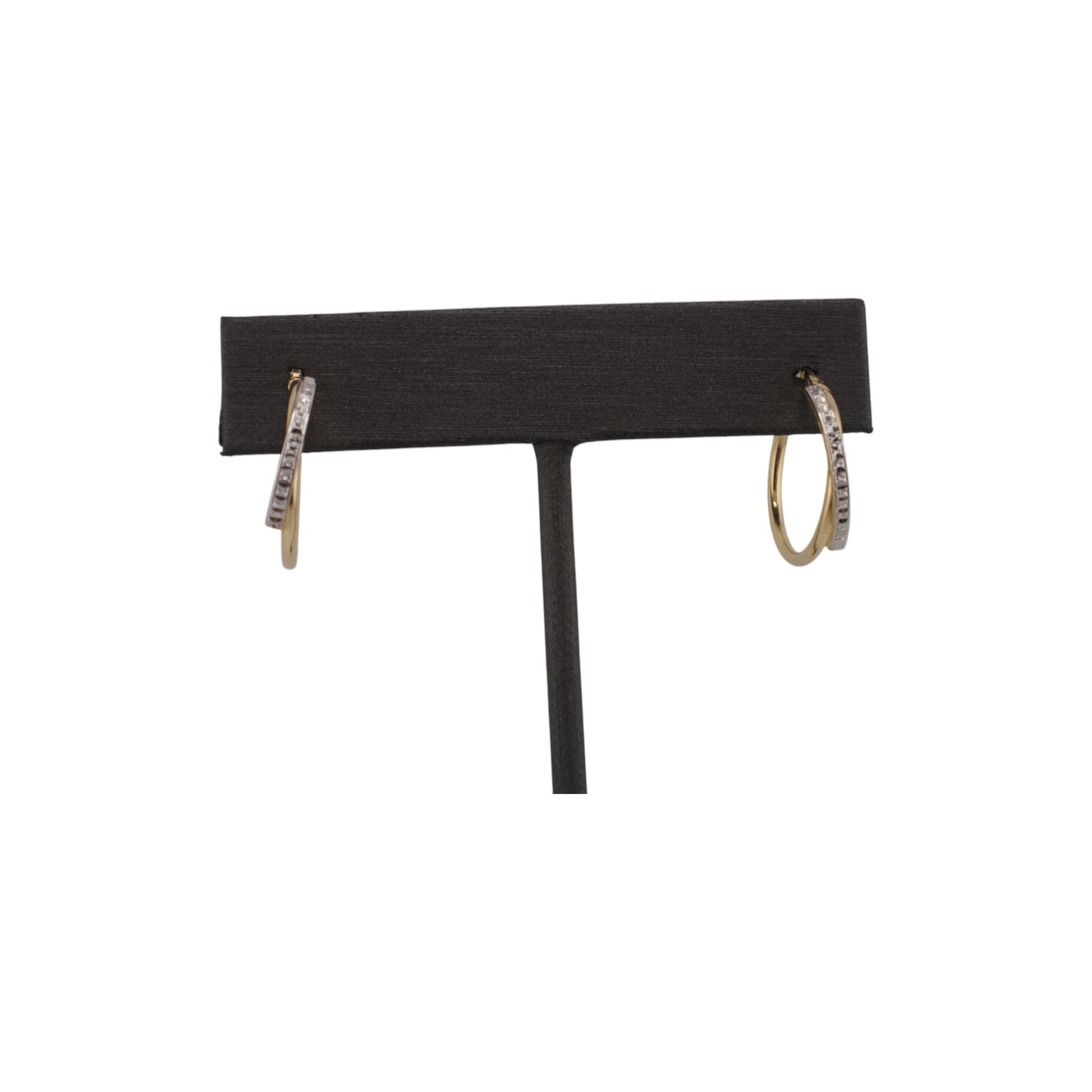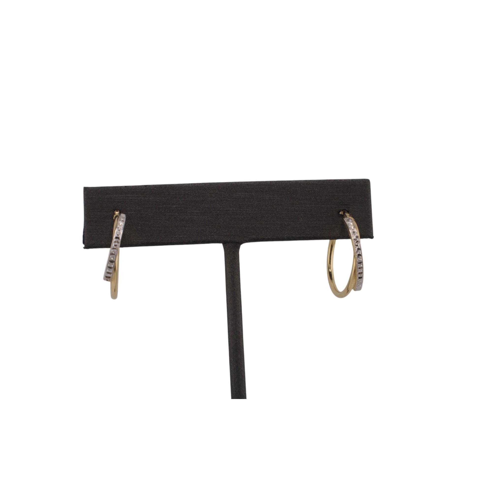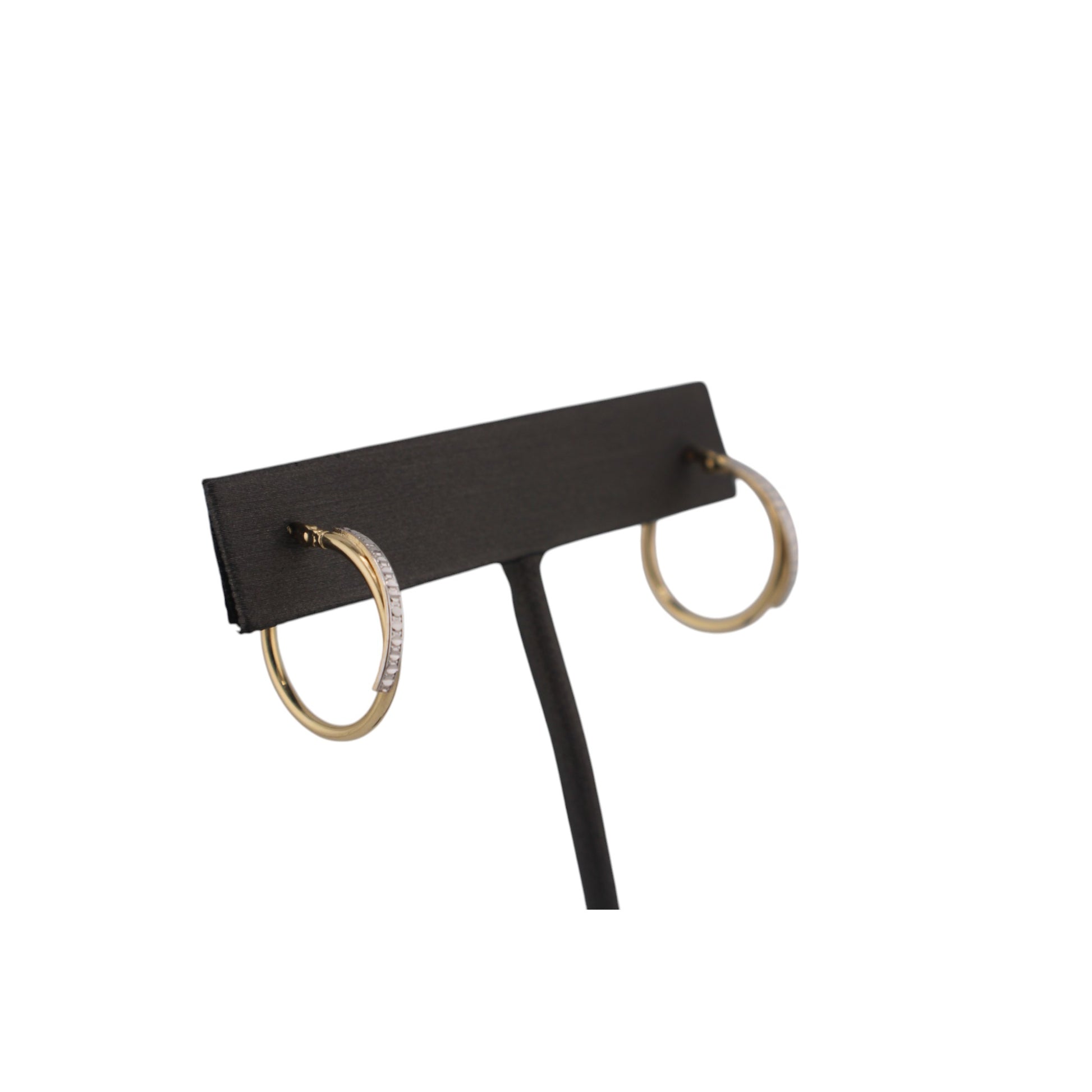 14KT Solid Yellow / White Gold Round Hoops Earrings