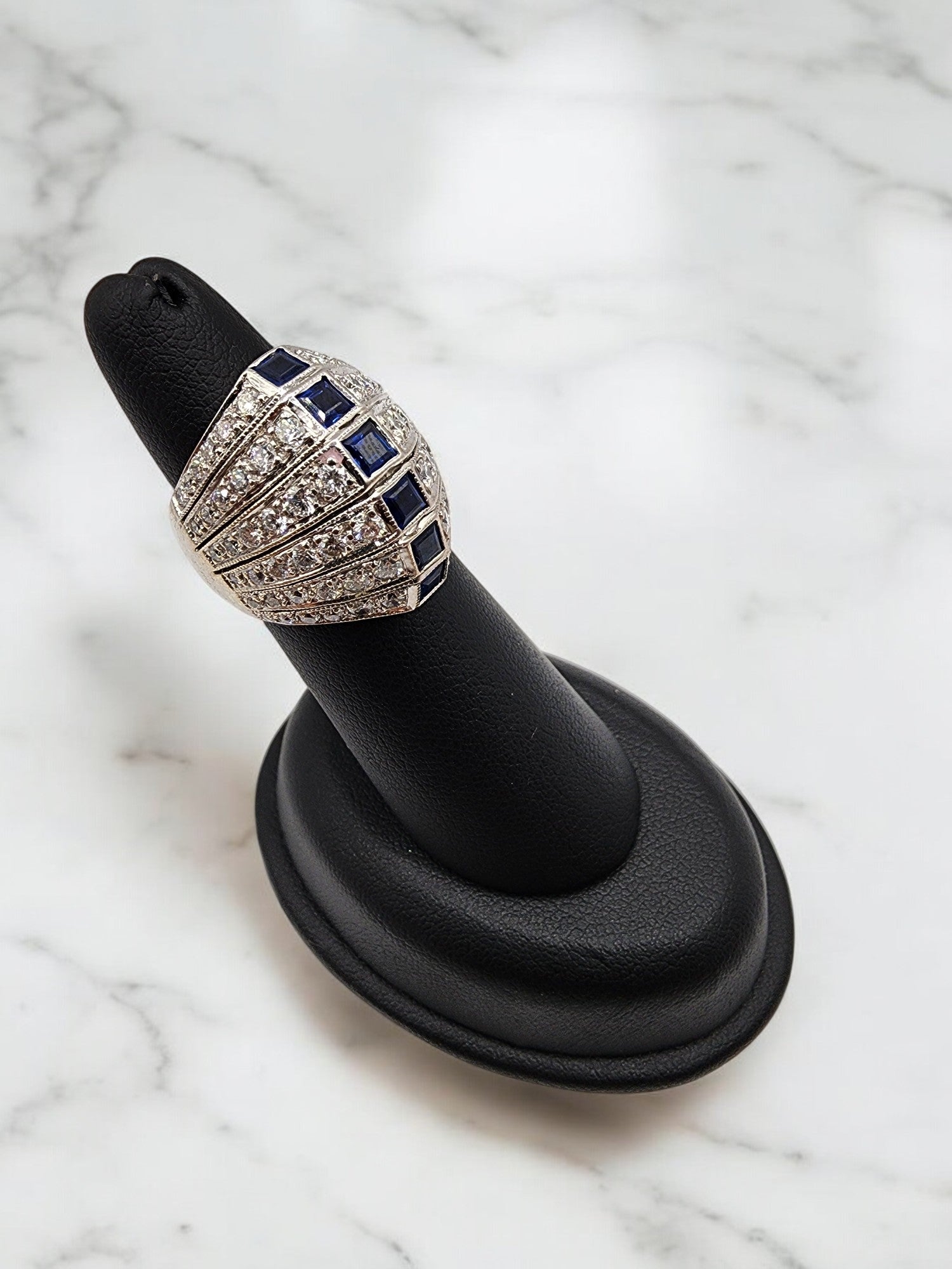 14KT White Gold 6Row 2.25ct Diamond Ring W/.75 Sapphire
