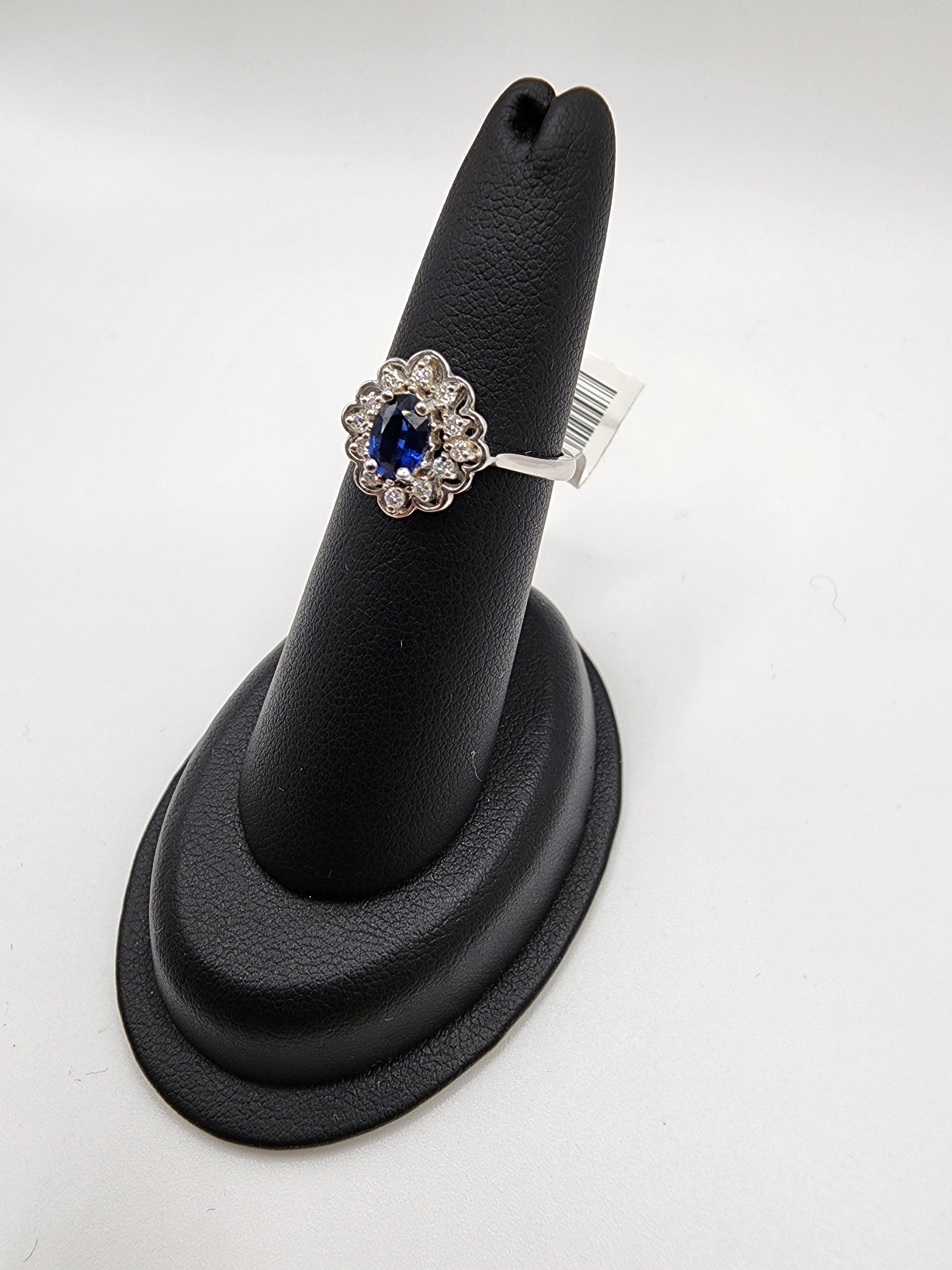 14KT White Gold Gen Sapphire w/ .55 & and .20 cttw Diamond Ring