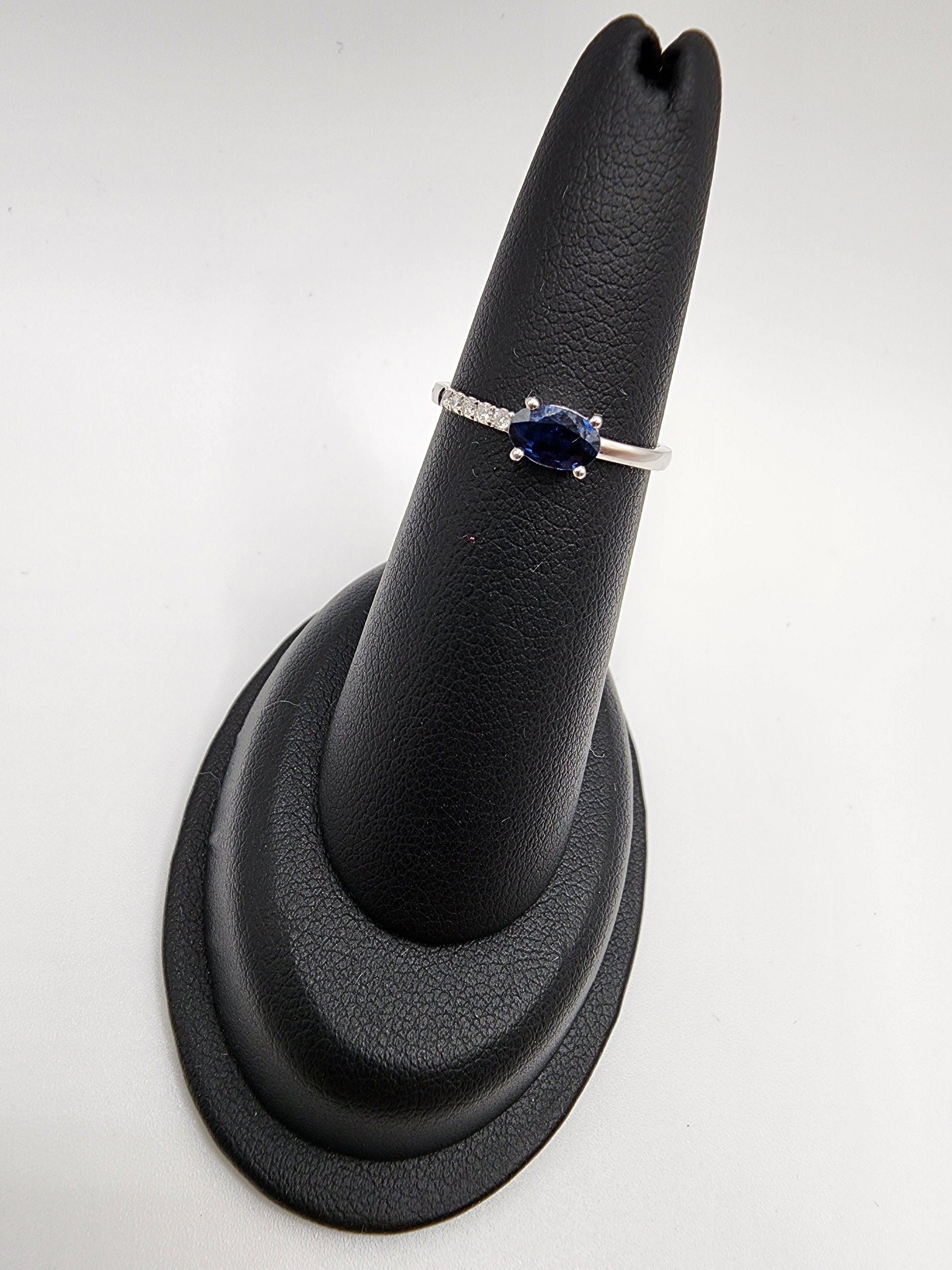 14KT White Gold Horiz Gen Sapphire w/ Diamon Thing Ring. This exquisite ring features a brilliant diamond set in a beautifully crafted band.