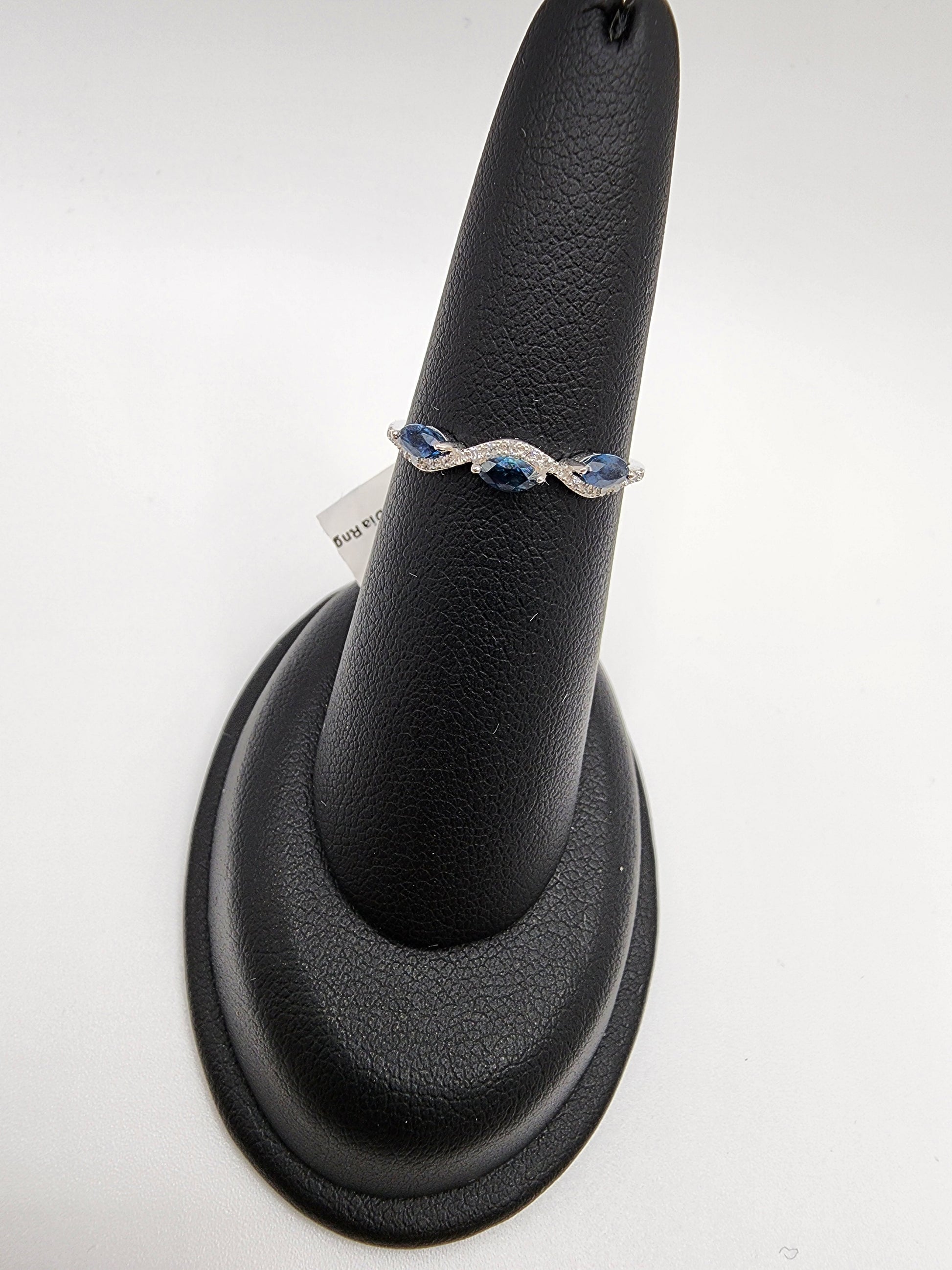 14KT White Gold Marquise CUT Sapphire W/.10 Diamond Ring its a luxurious addition to any jewelry collection.