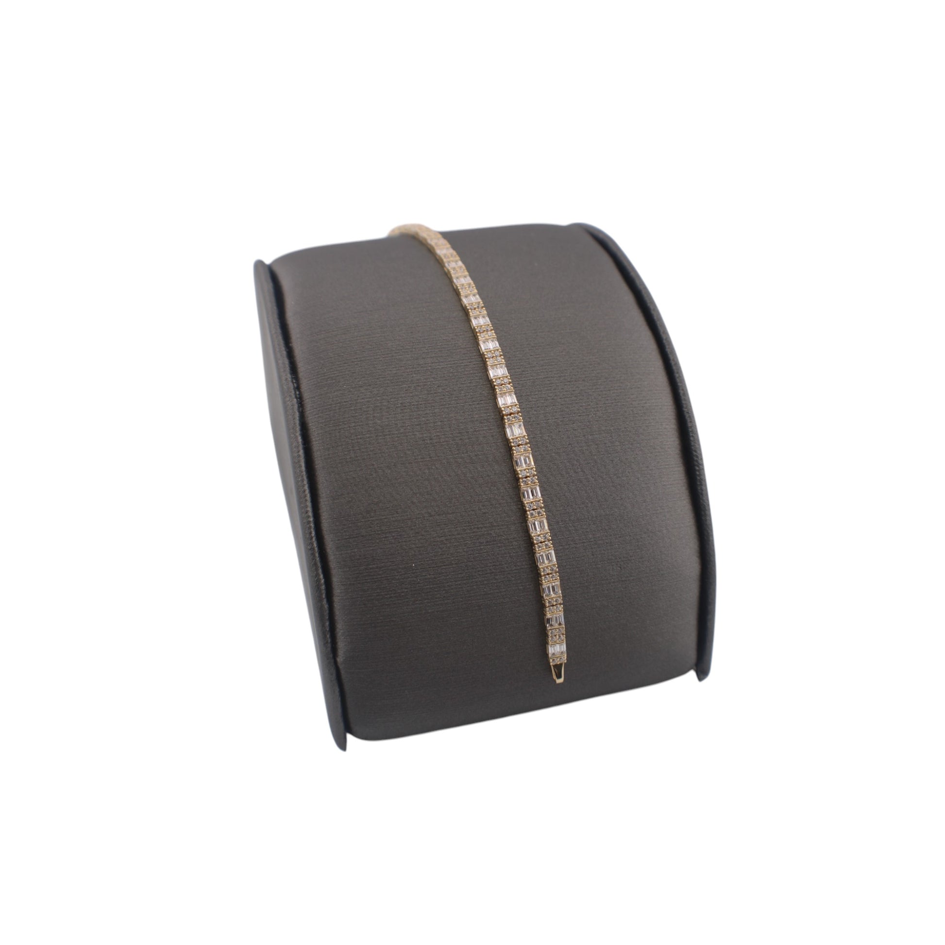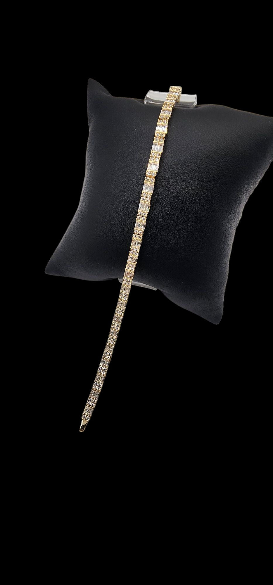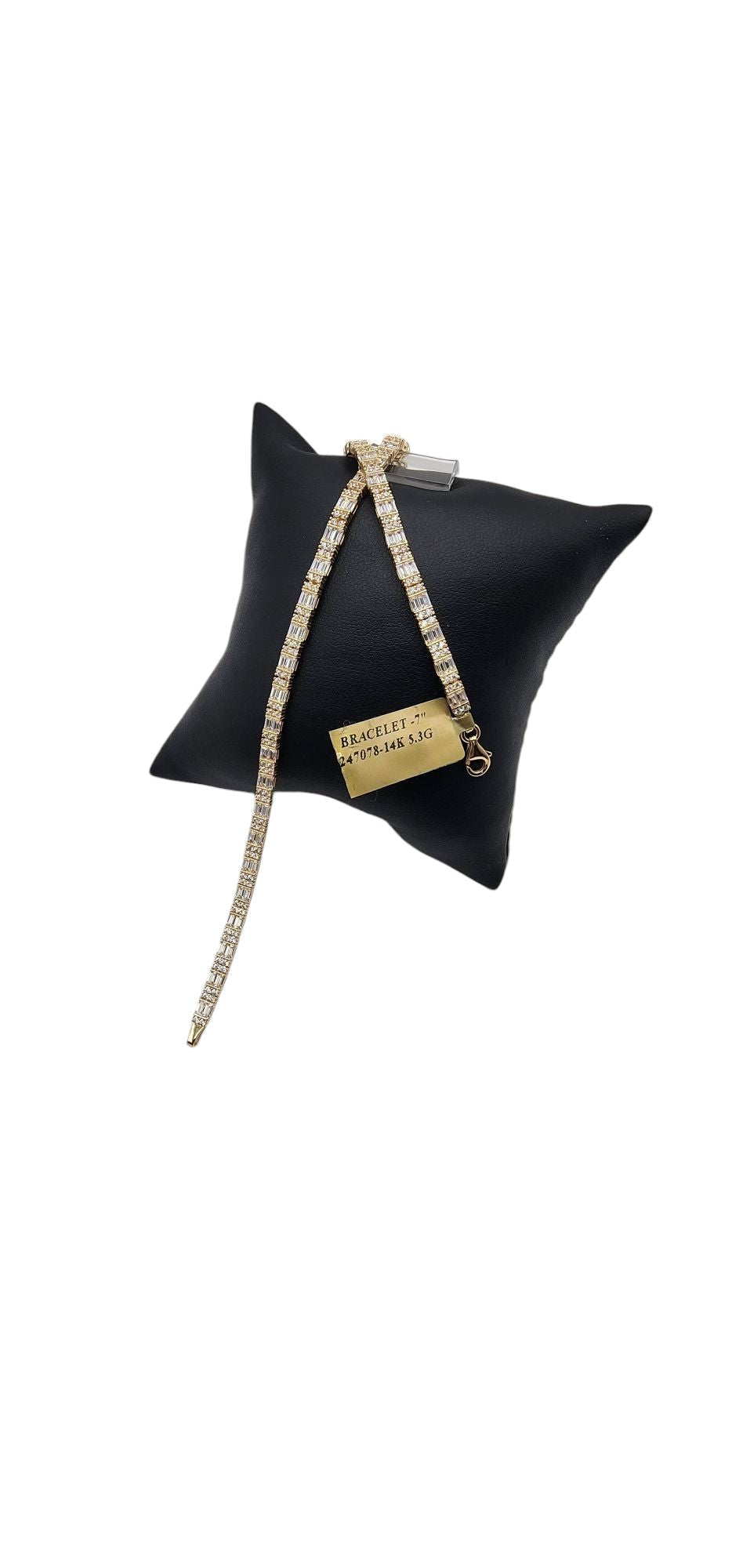 14KT Yellow Gold 3.5mm Fancy Bracelets 7'' Box 5.3g W/ Full Baguet & White Cz