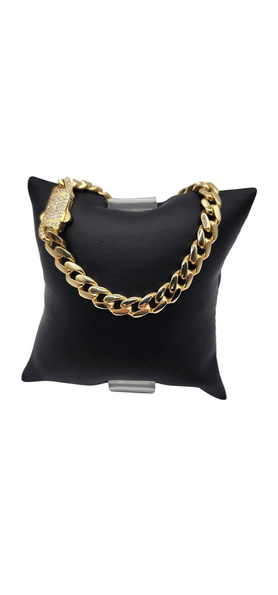 14KT Yellow Gold Fancy 7.5'' Semisolid Monaco Bracelets Box Lock W/ White Cz
