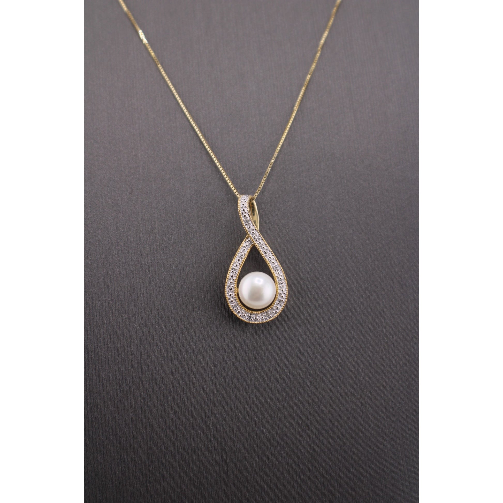 14KT Yellow Gold FW Pearl W/0.5cttw Diamond Loop Pendant And Chain. A diamond pendant is a stylish piece of jewelry featuring a sparkling diamond