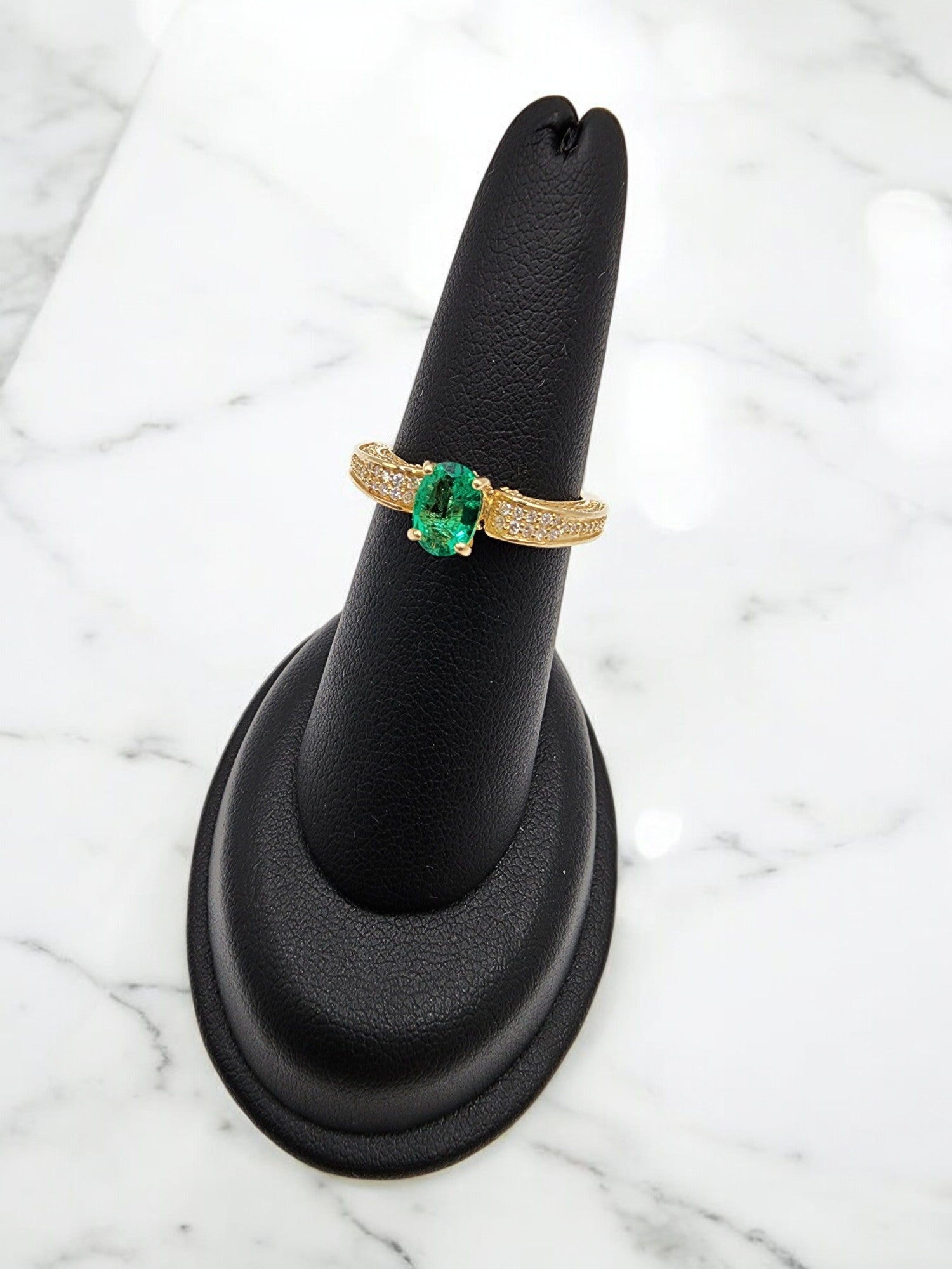 14KT Yellow Gold/ Gen Recrys Emerald & .75cttw Diamond Ring