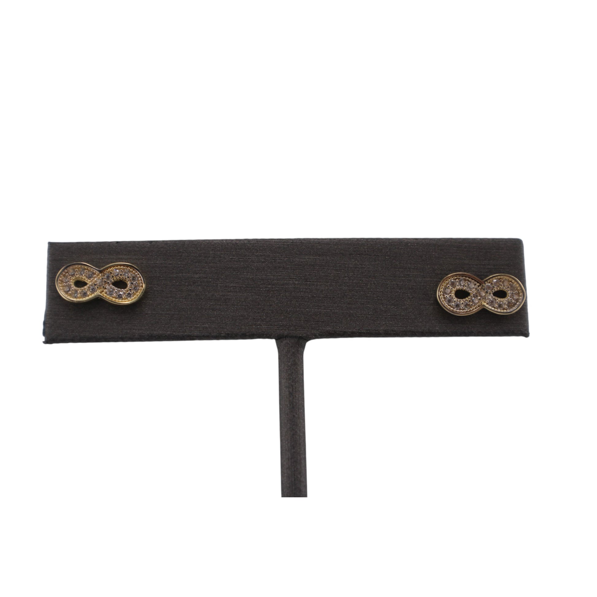 14KT Yellow Gold Infinity W/ White Cz Studs Earrings