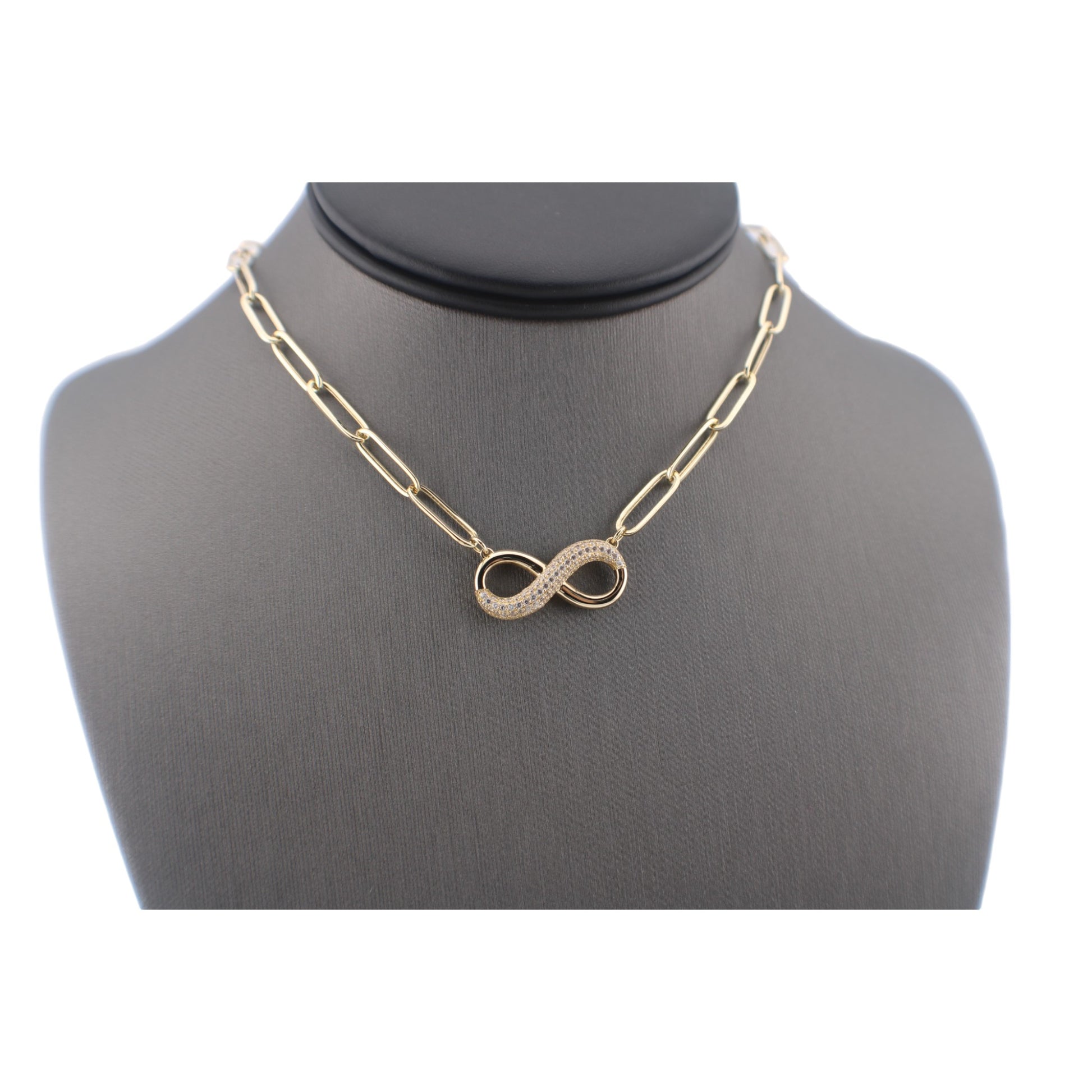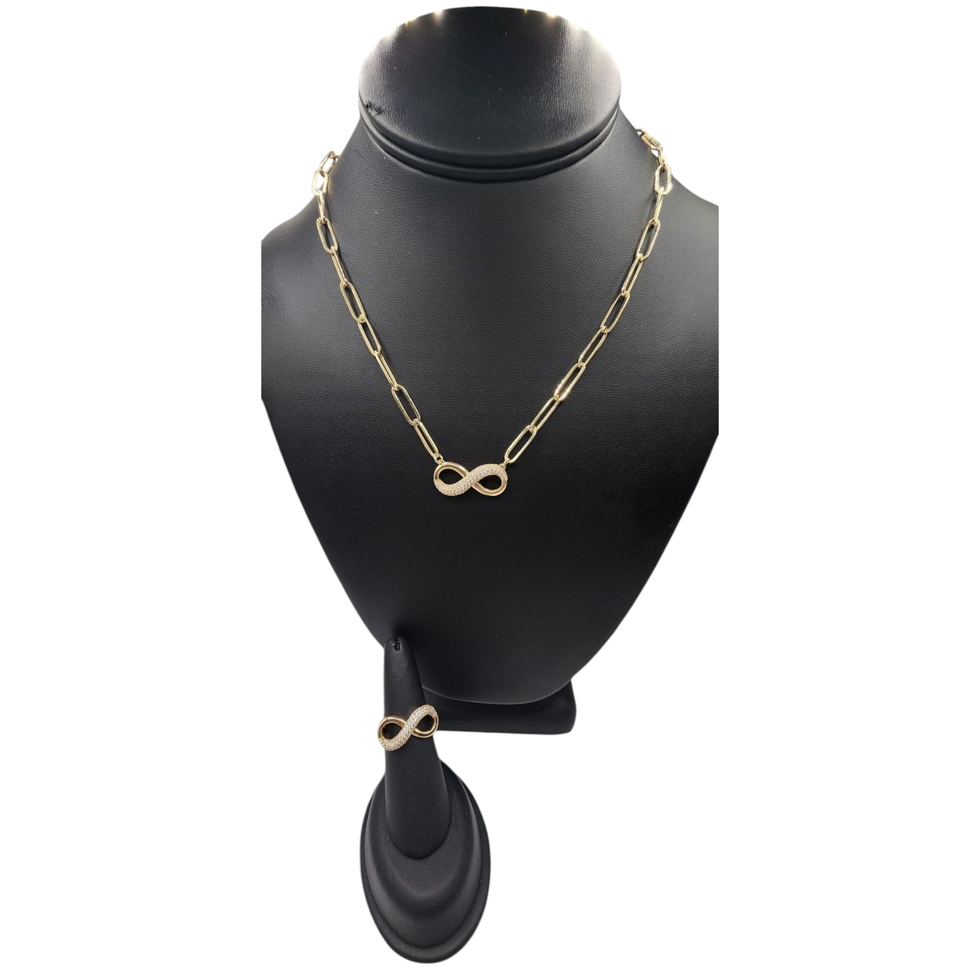 14KT Yellow Gold Set OF Semisolid & Paper Clip Chain W/ Infinite Pendant white Cz & Ring