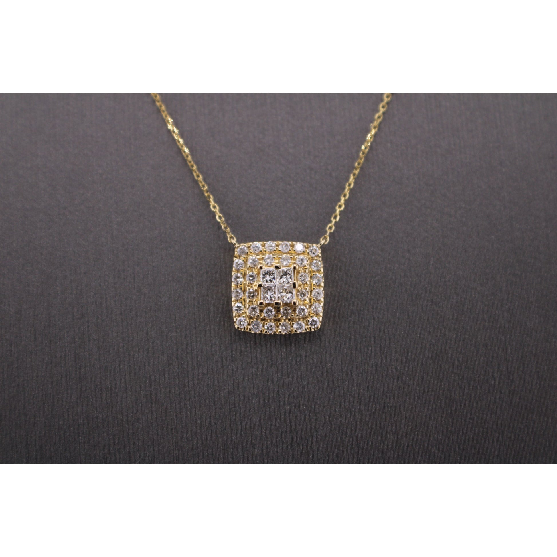 14KT Yellow Gold Square W/White 1.00cttw Diamond And Chain 18" . A diamond pendant is a stylish piece of jewelry featuring a sparkling diamond