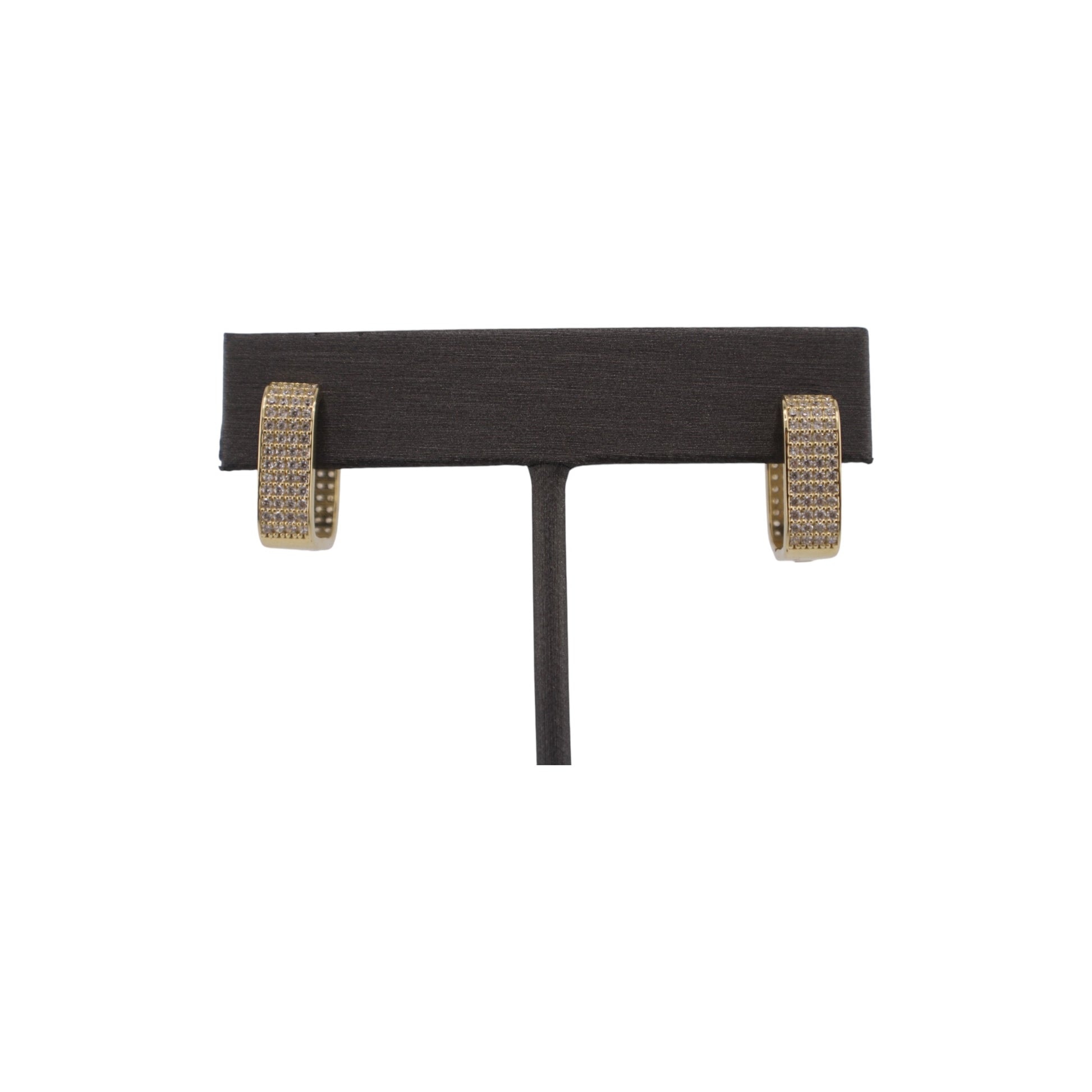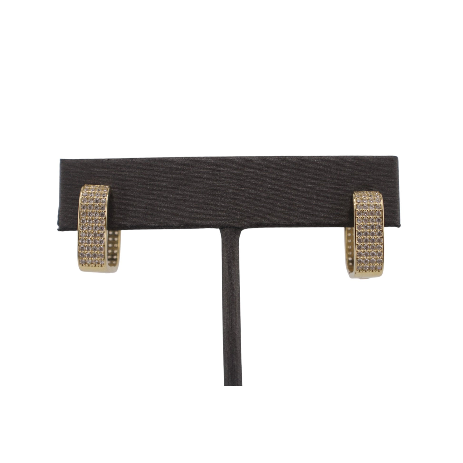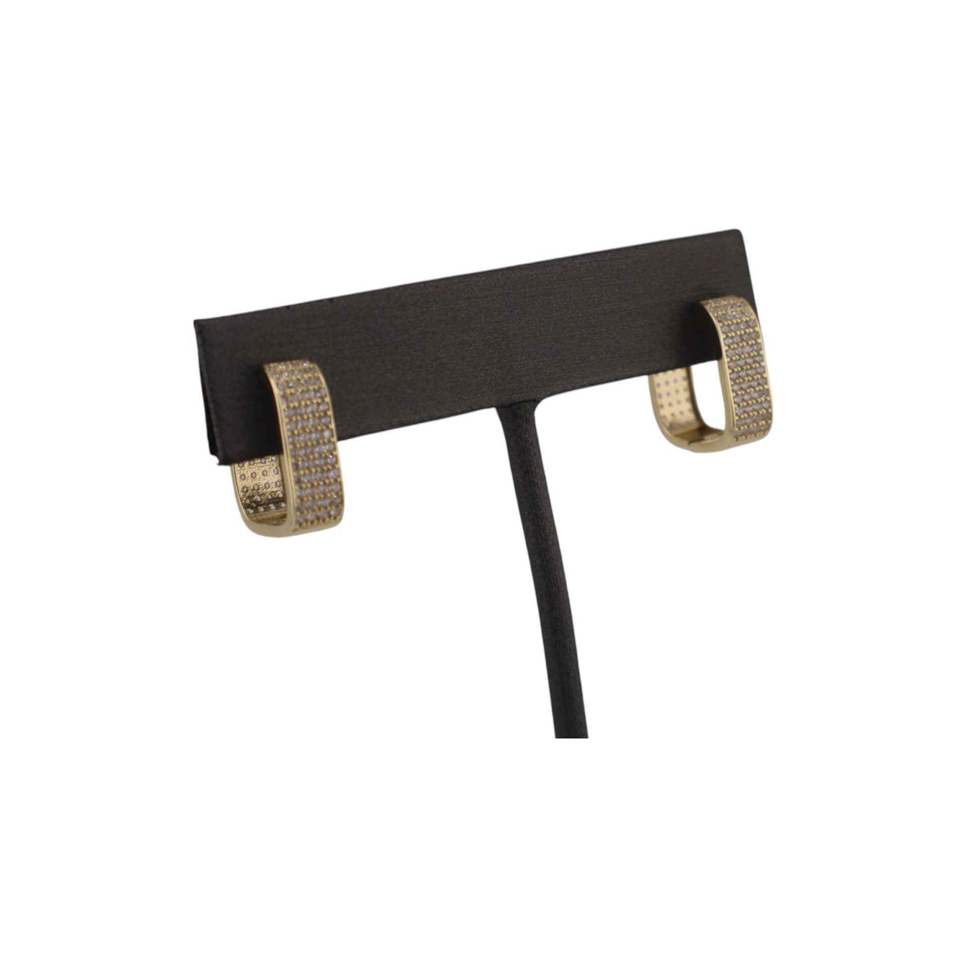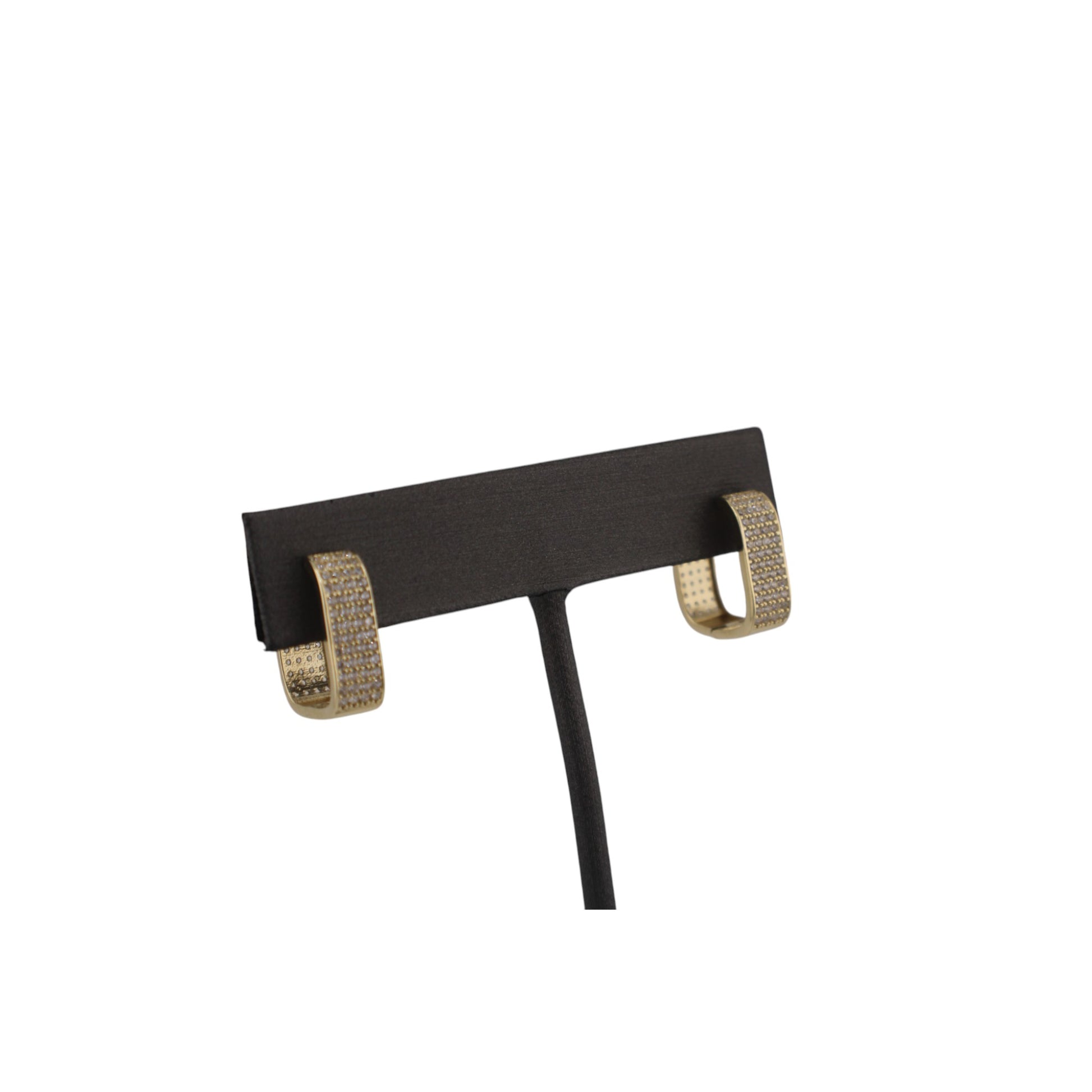 14KT Yellow Gold Square W/ White Cz Hoops 14.mm Earrings