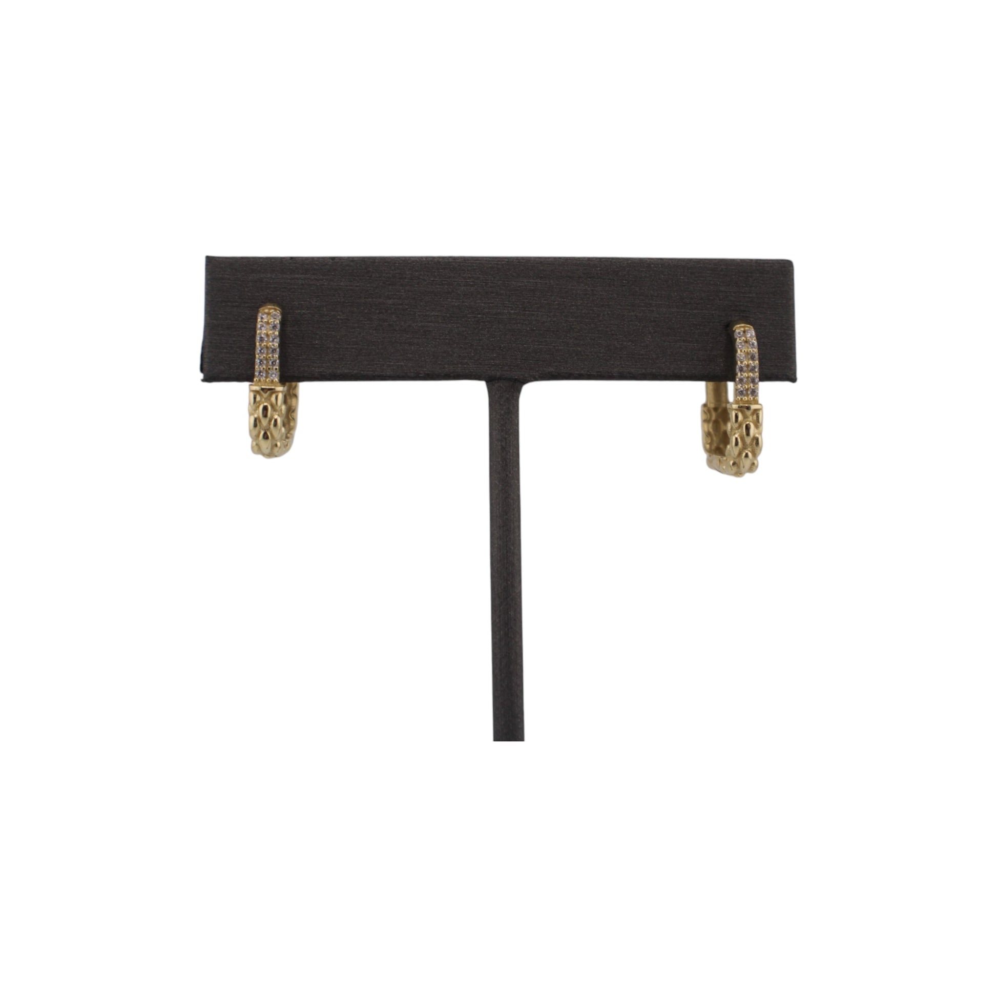 14KT Yellow Gold Square W/ White Cz Style Hoops 13.mm Earrings