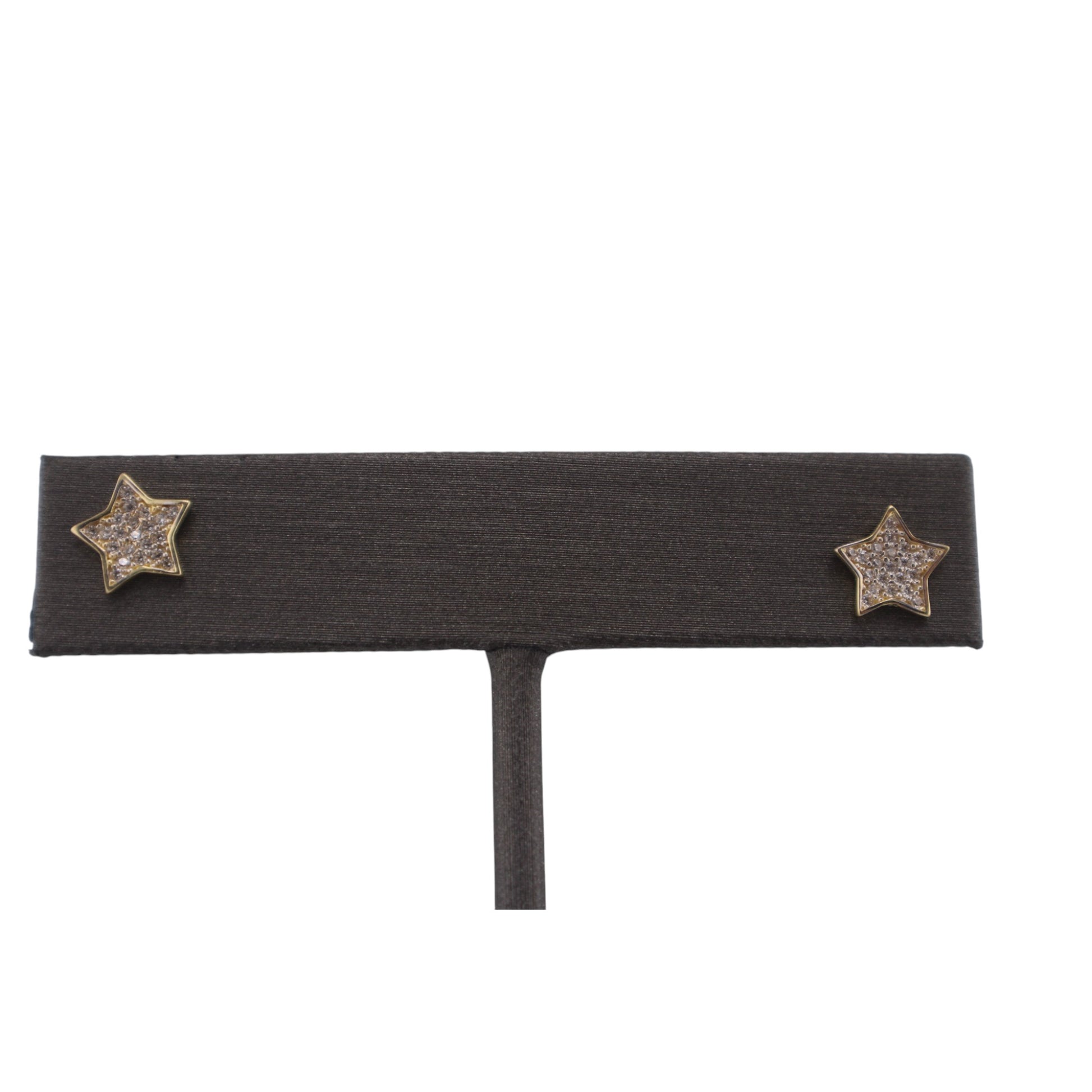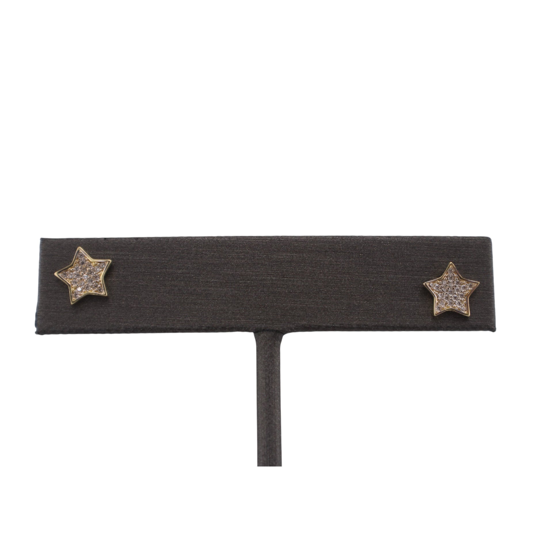 14KT Yellow Gold Star W/ White Cz Studs Earrings
