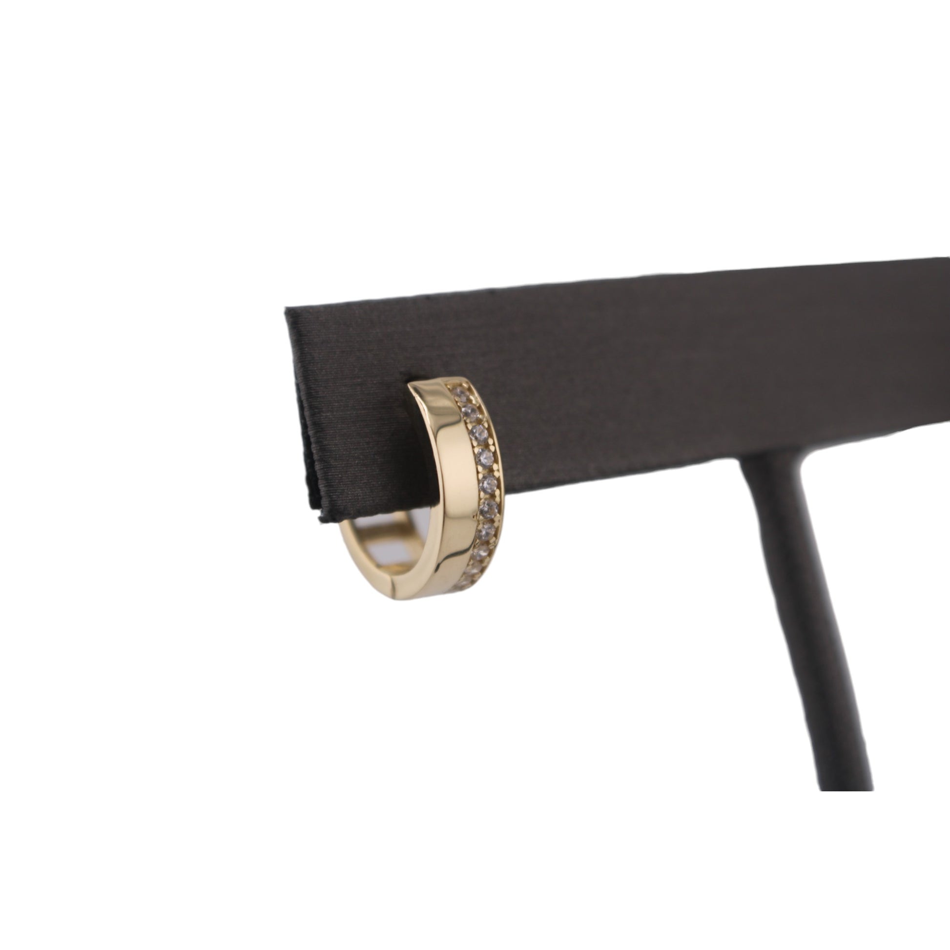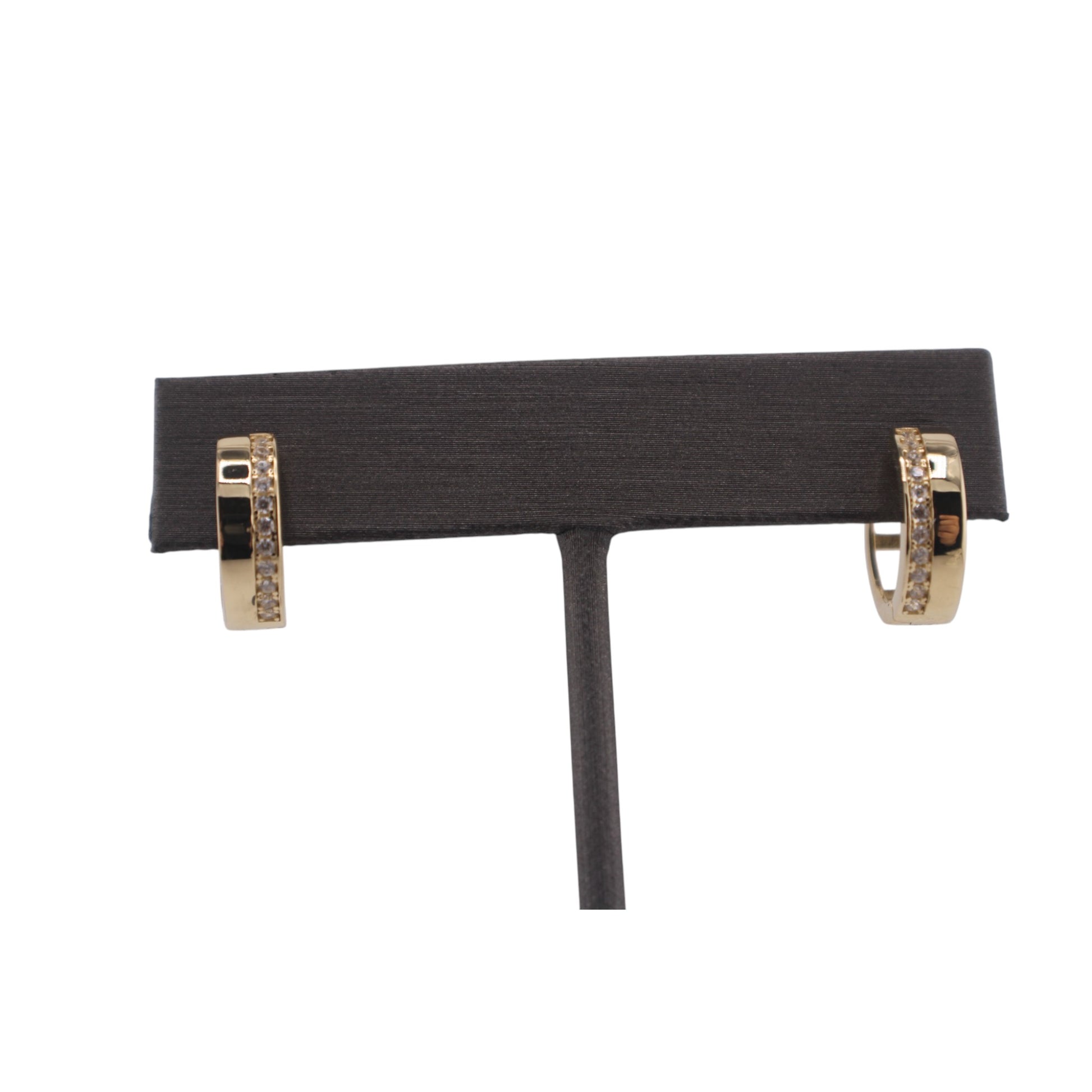 14KT Yellow W/ One Row White Cz 5mm Hoops Earrings
