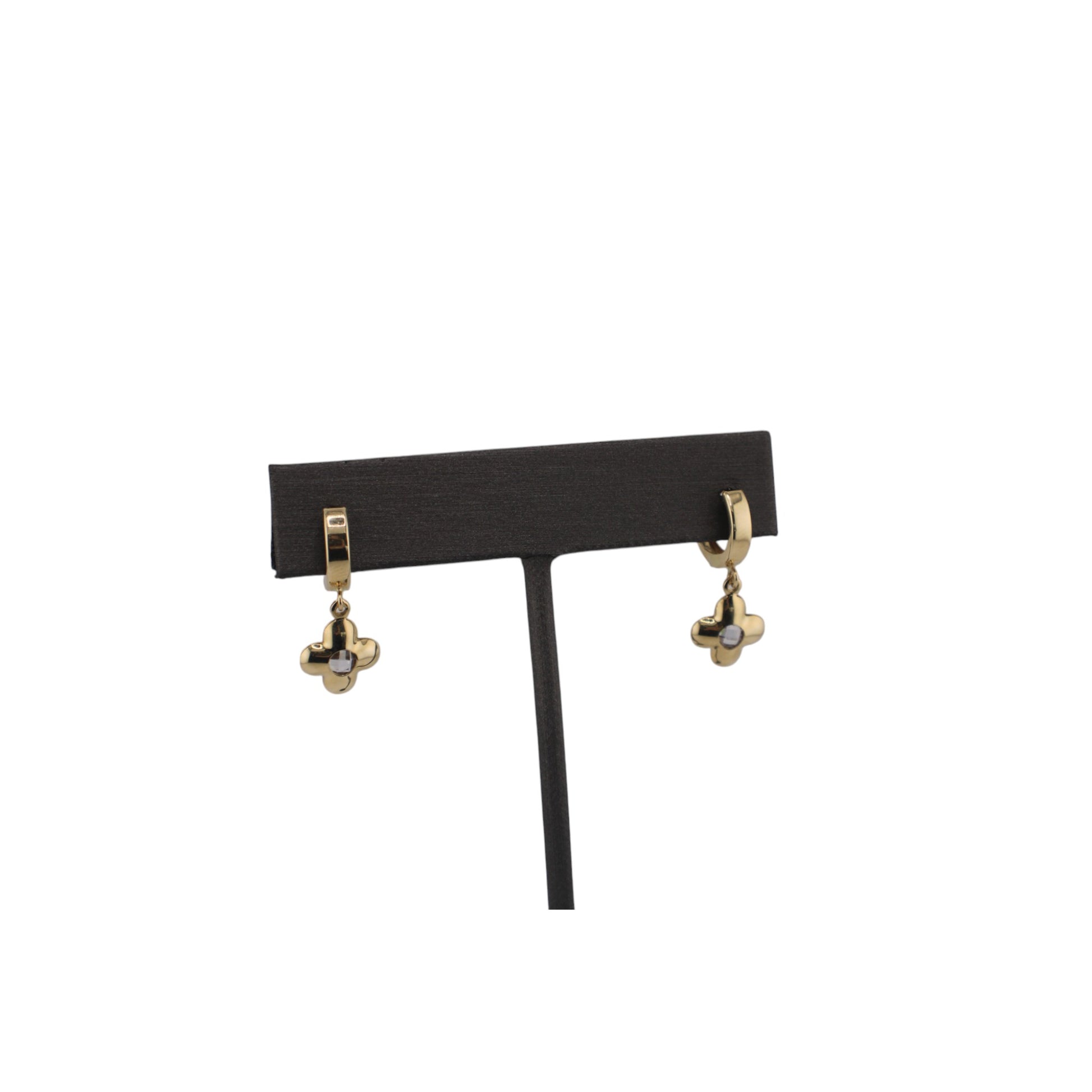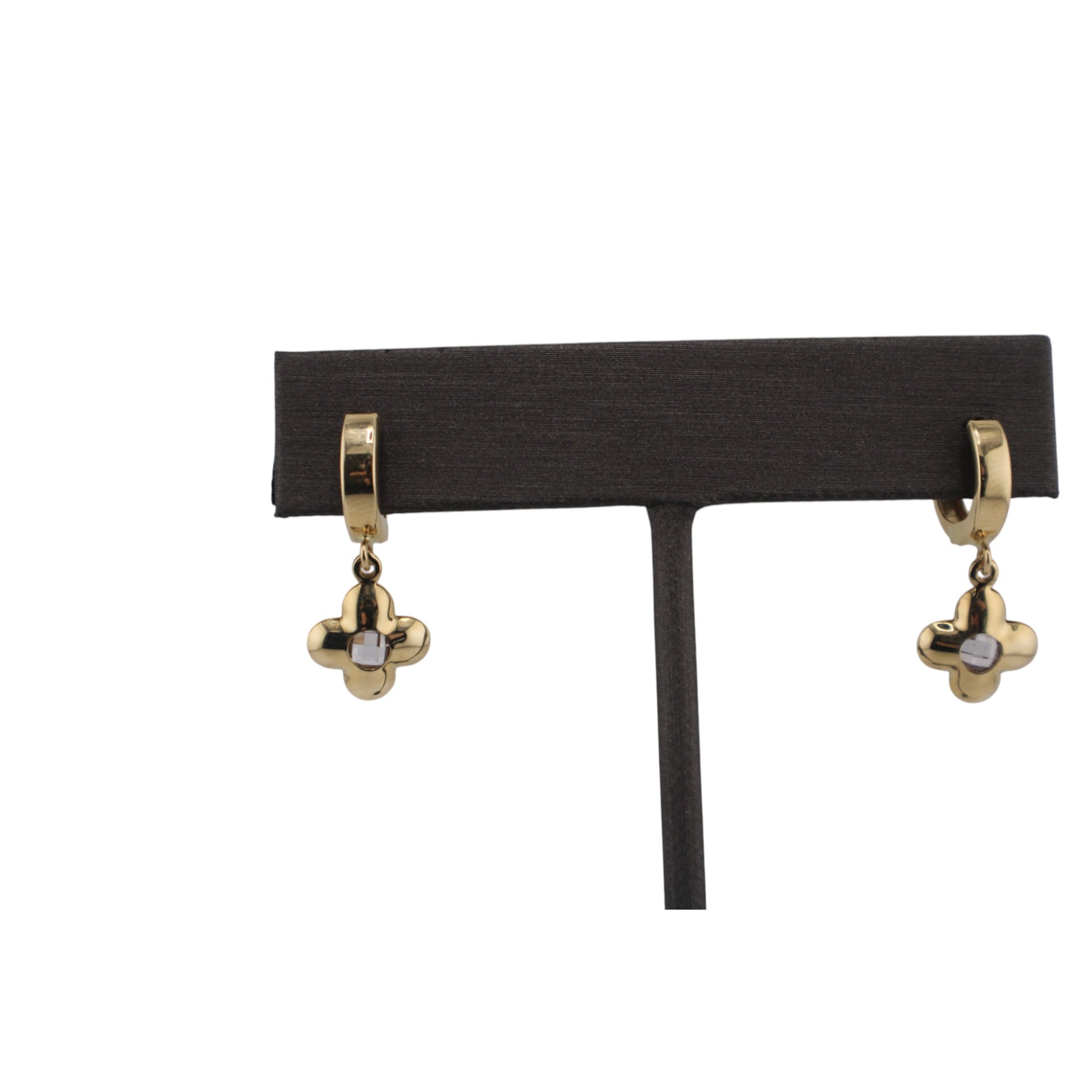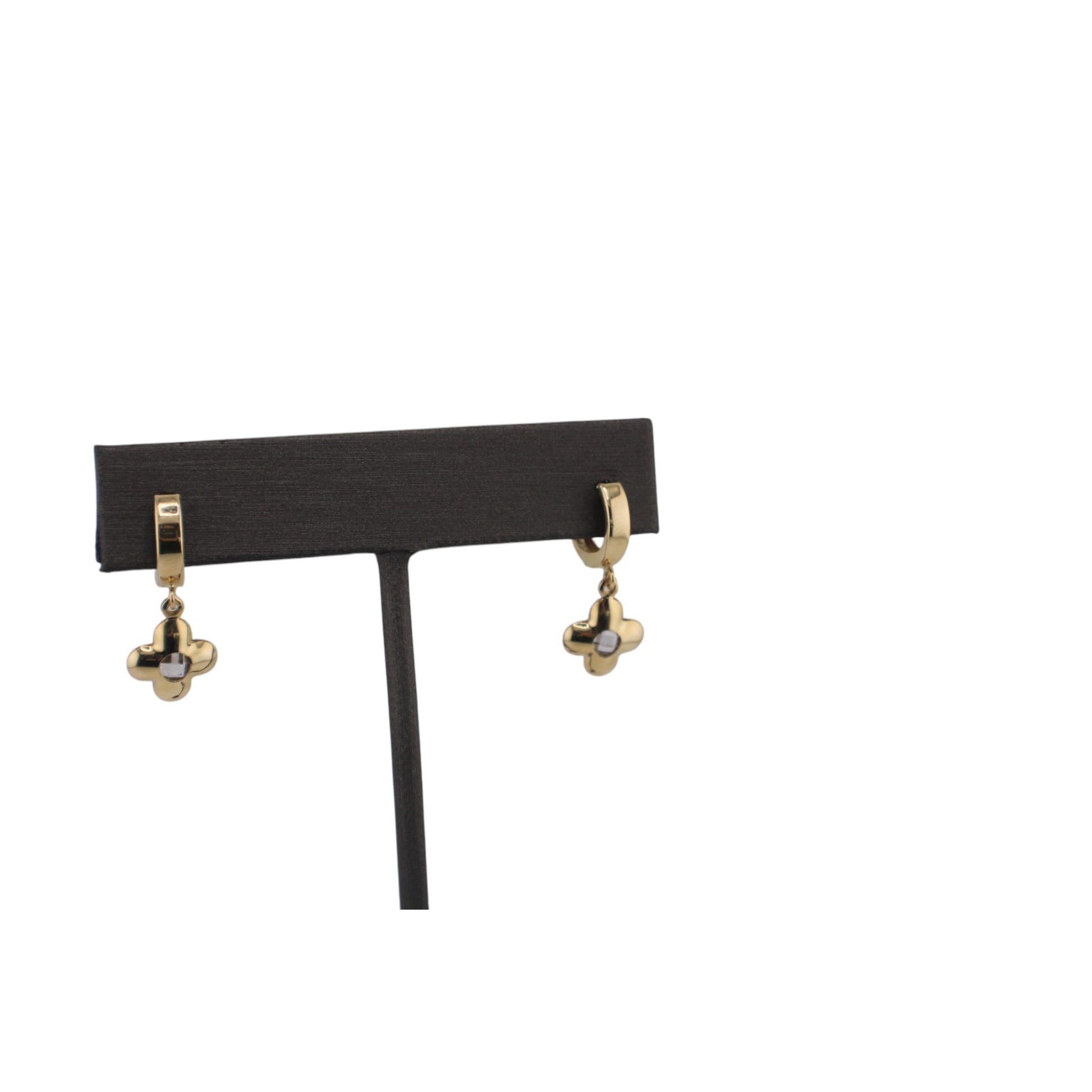 14KT Yellow W/ White Cz Hoops 4 leaf pendant Earrings