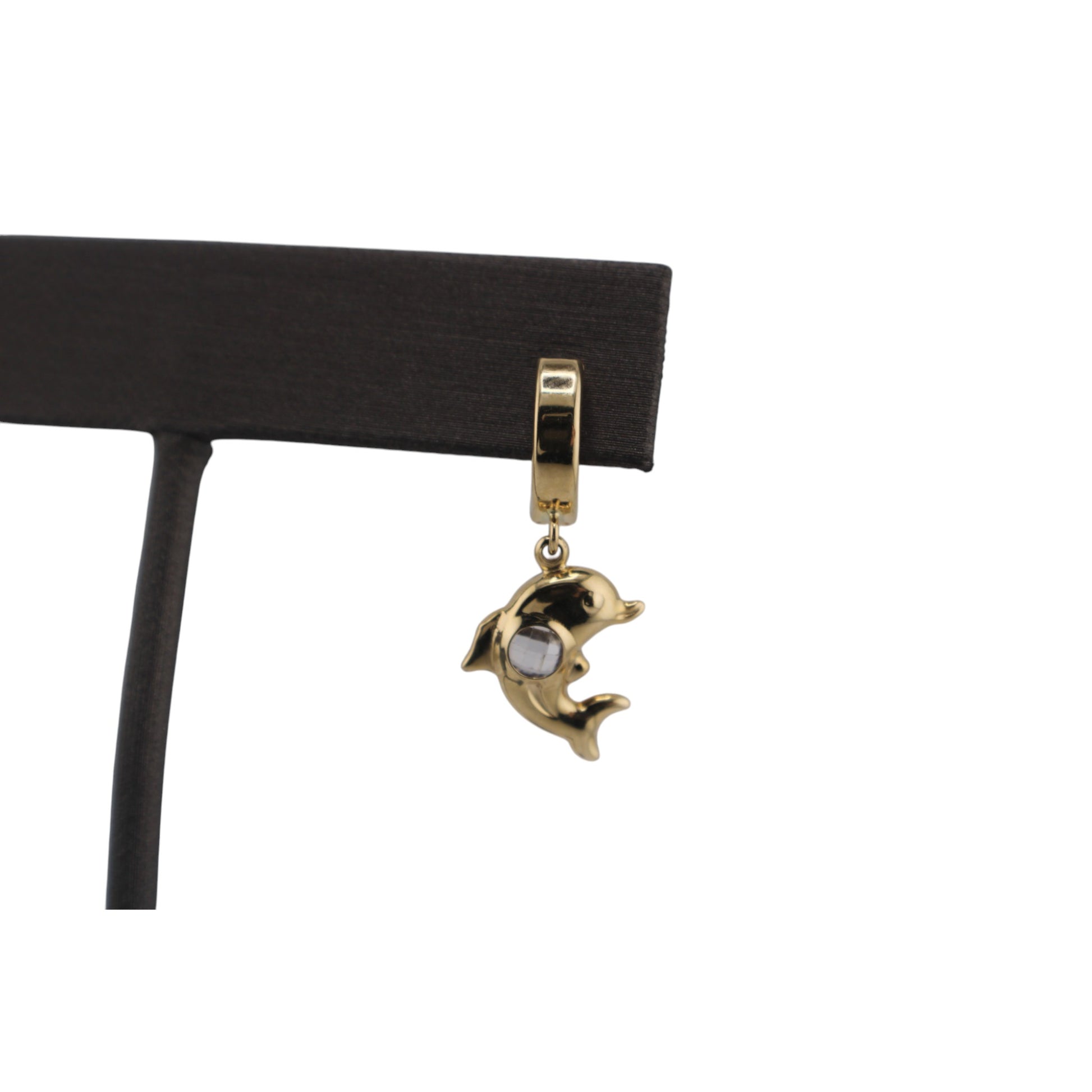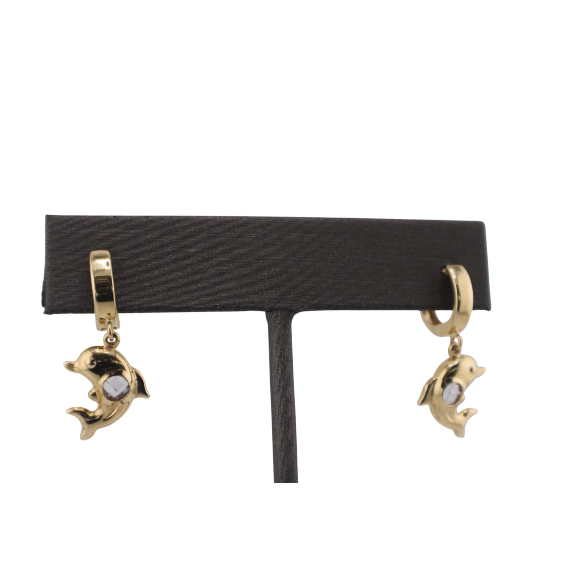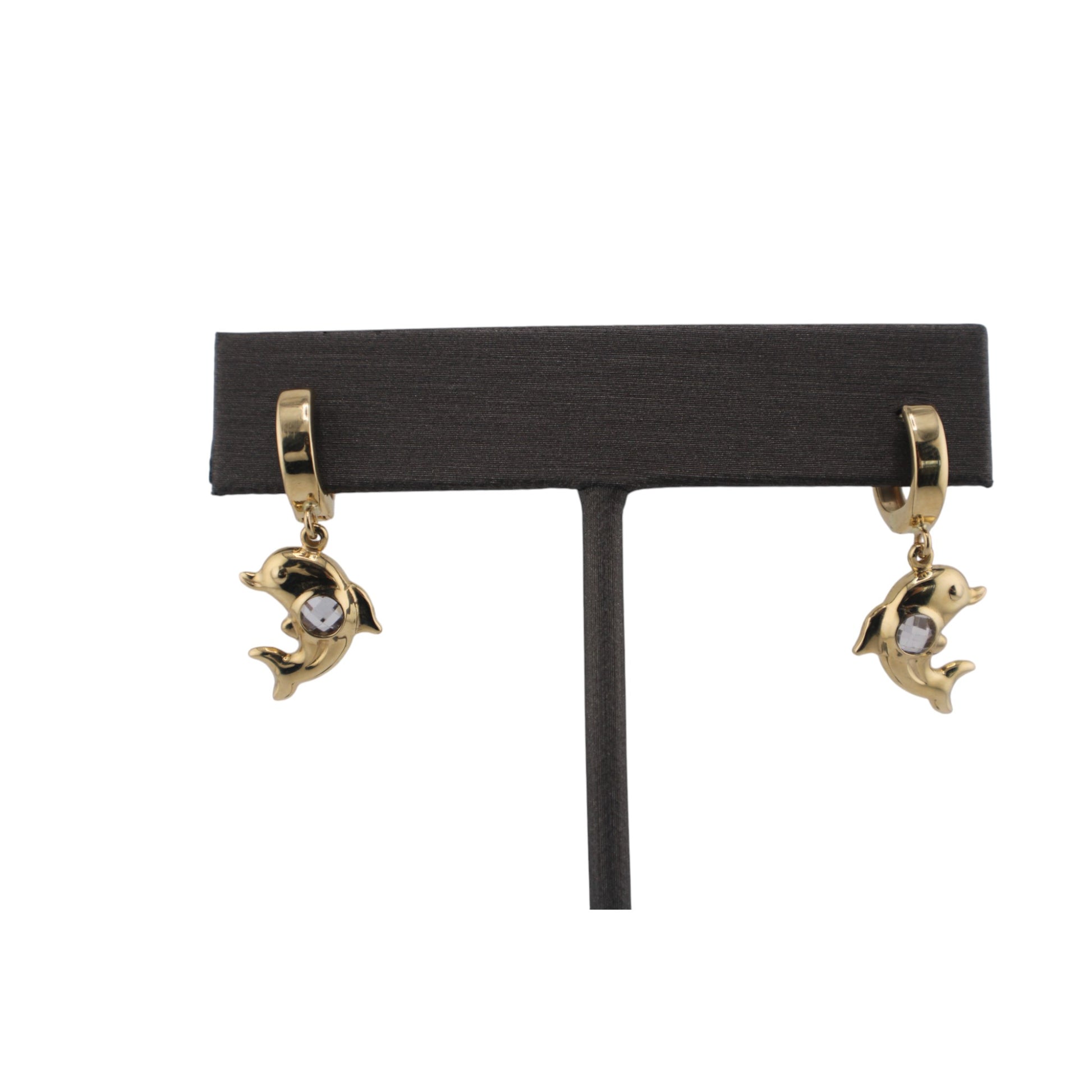 14KT Yellow W/ White Cz Hoops Dolphin pendant Earrings