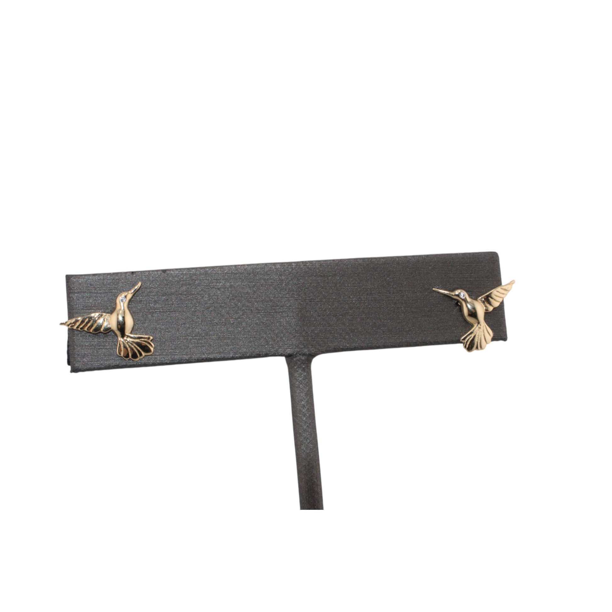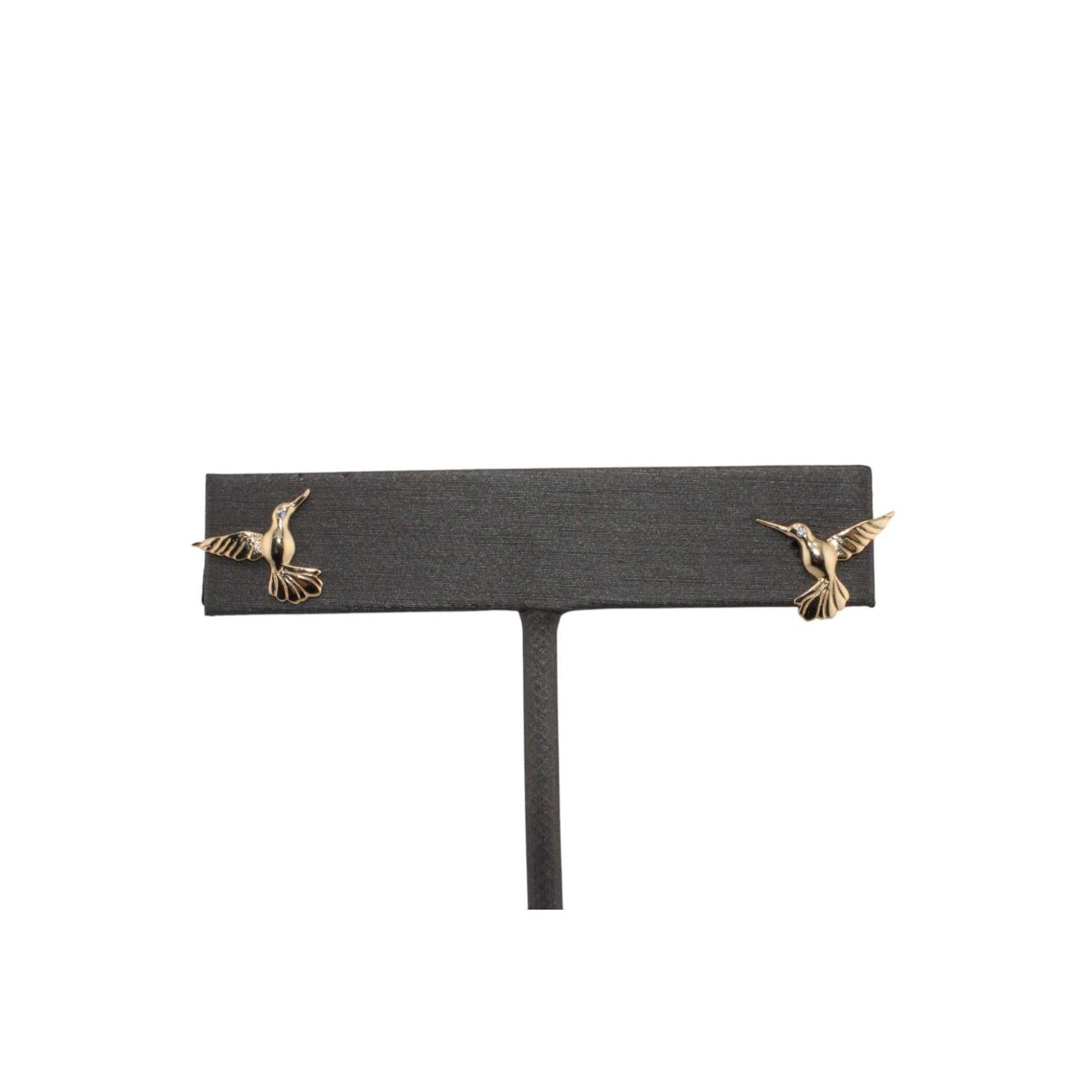14KT Yellow W/ White Cz Hummingbird Studs Earrings