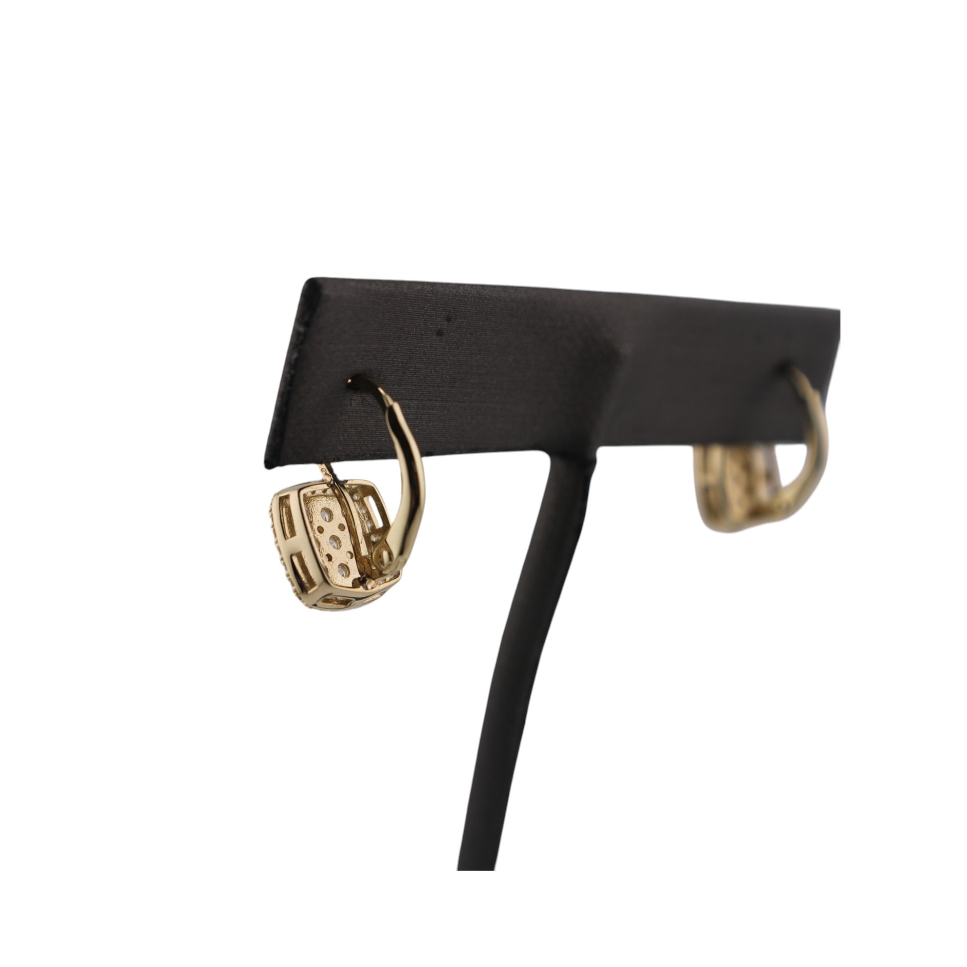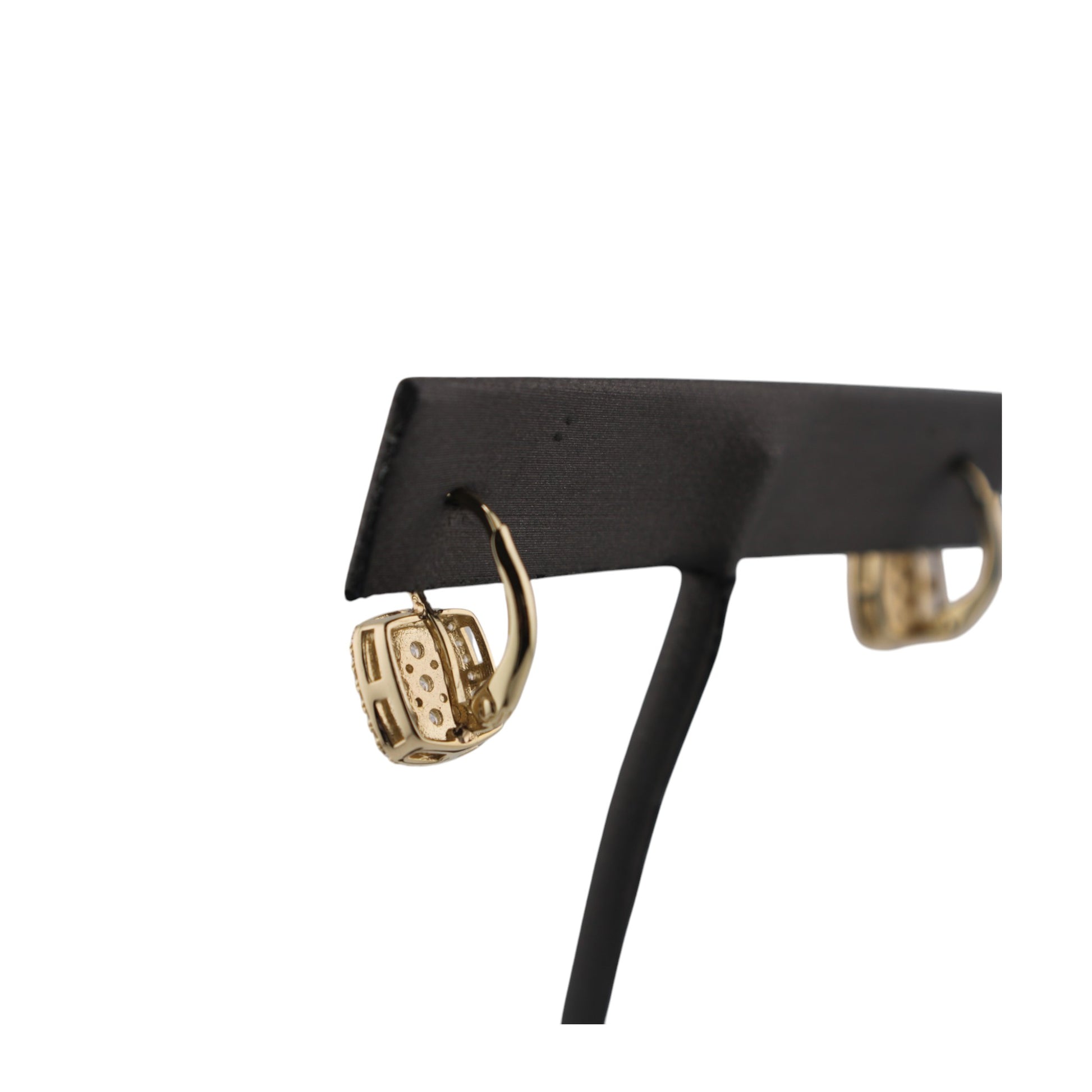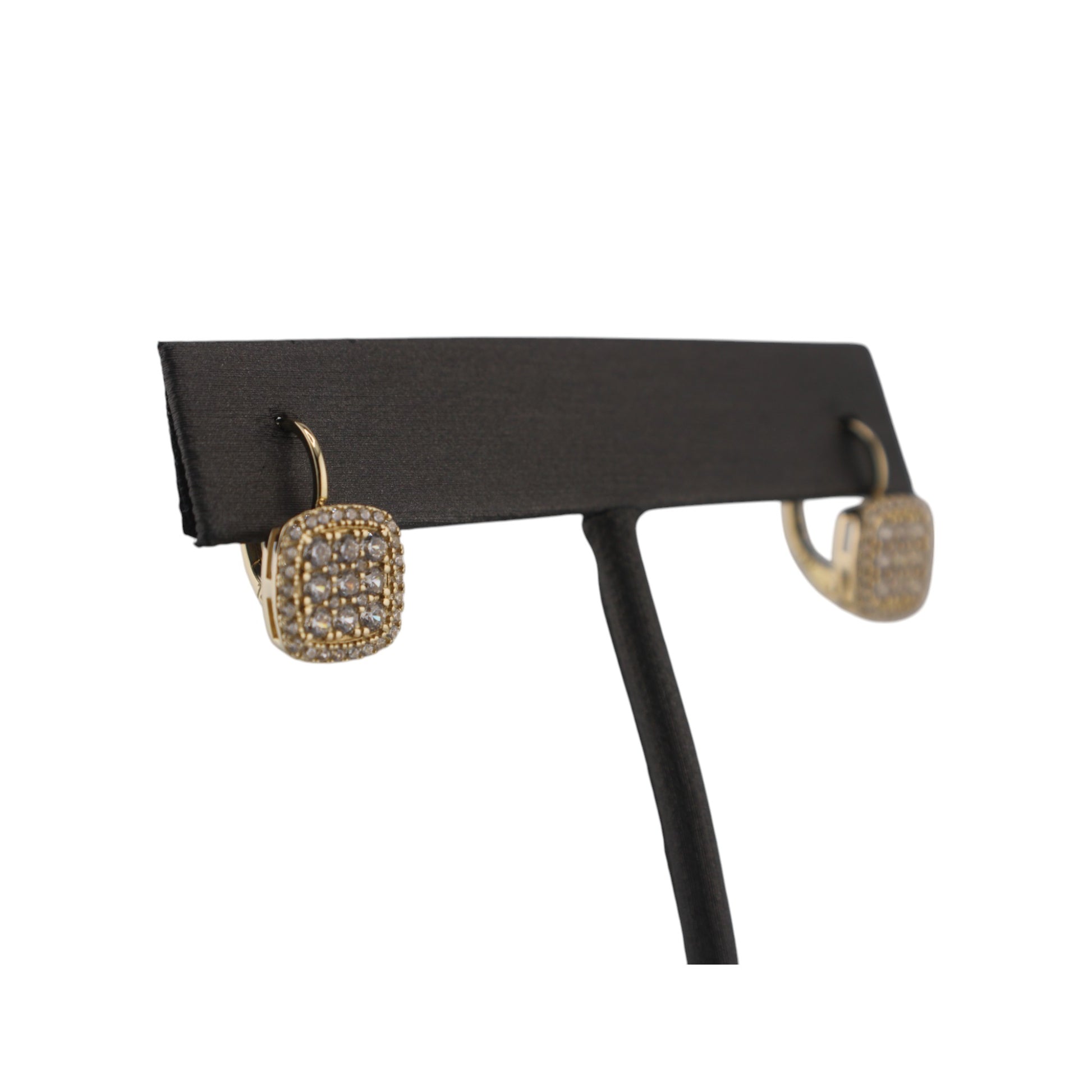 14KT Yellow W/ White Cz Square 10mm Drop Earring
