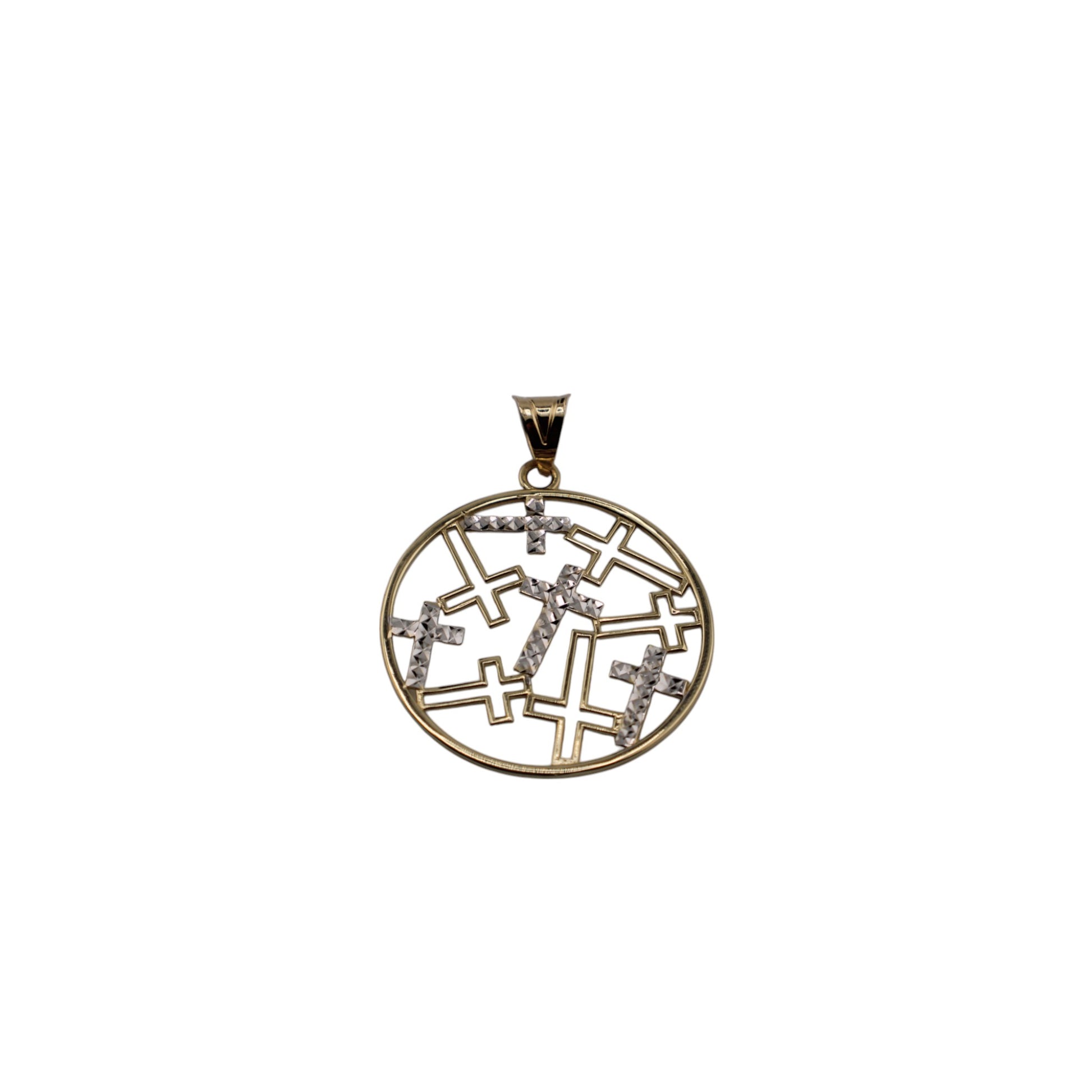 14KT Yellow/White Gold 40mm Fancy Cross Pendant