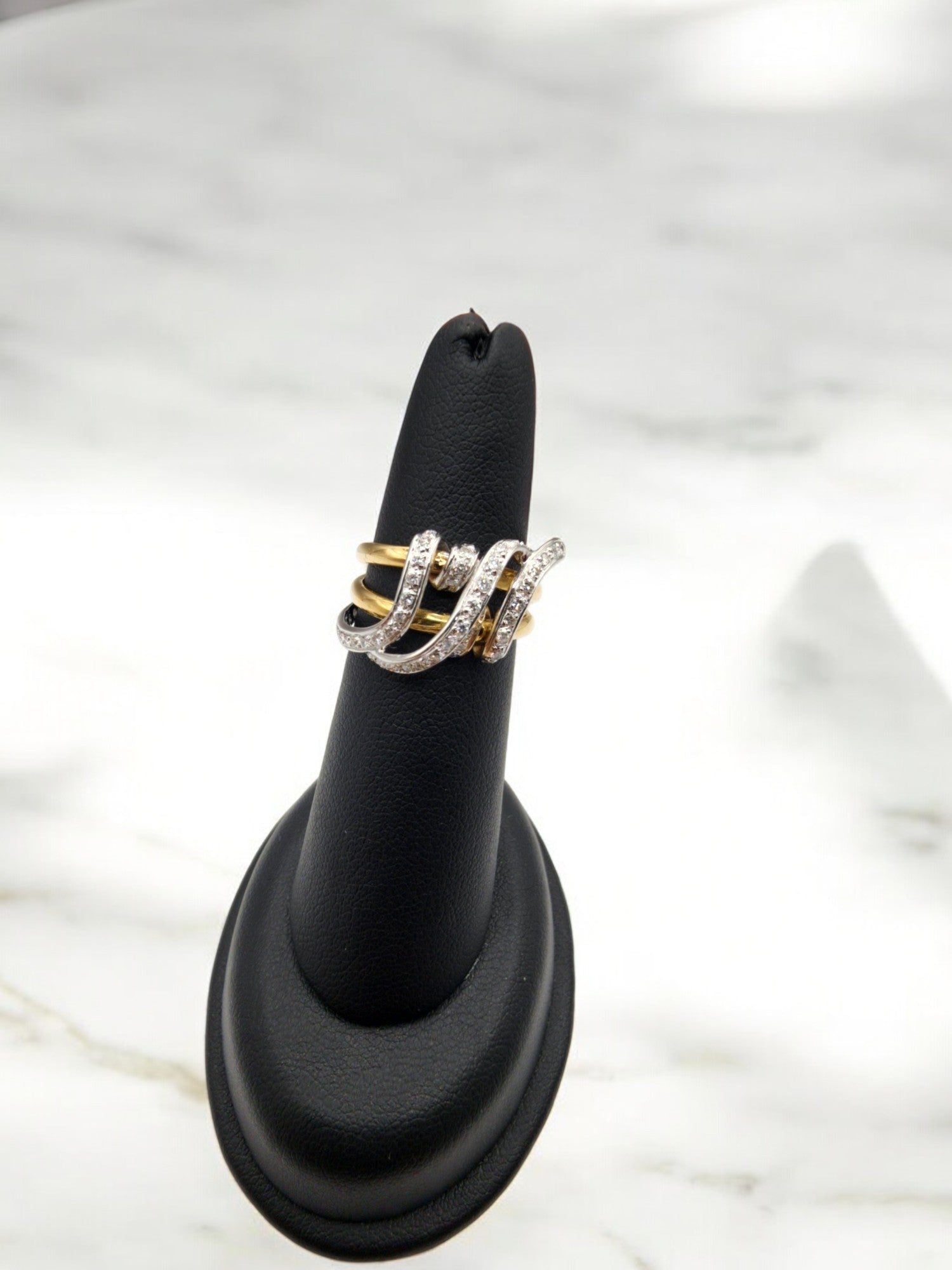 18KT White & Yellow Gold W/ White .50 Diamond loop Row Ring