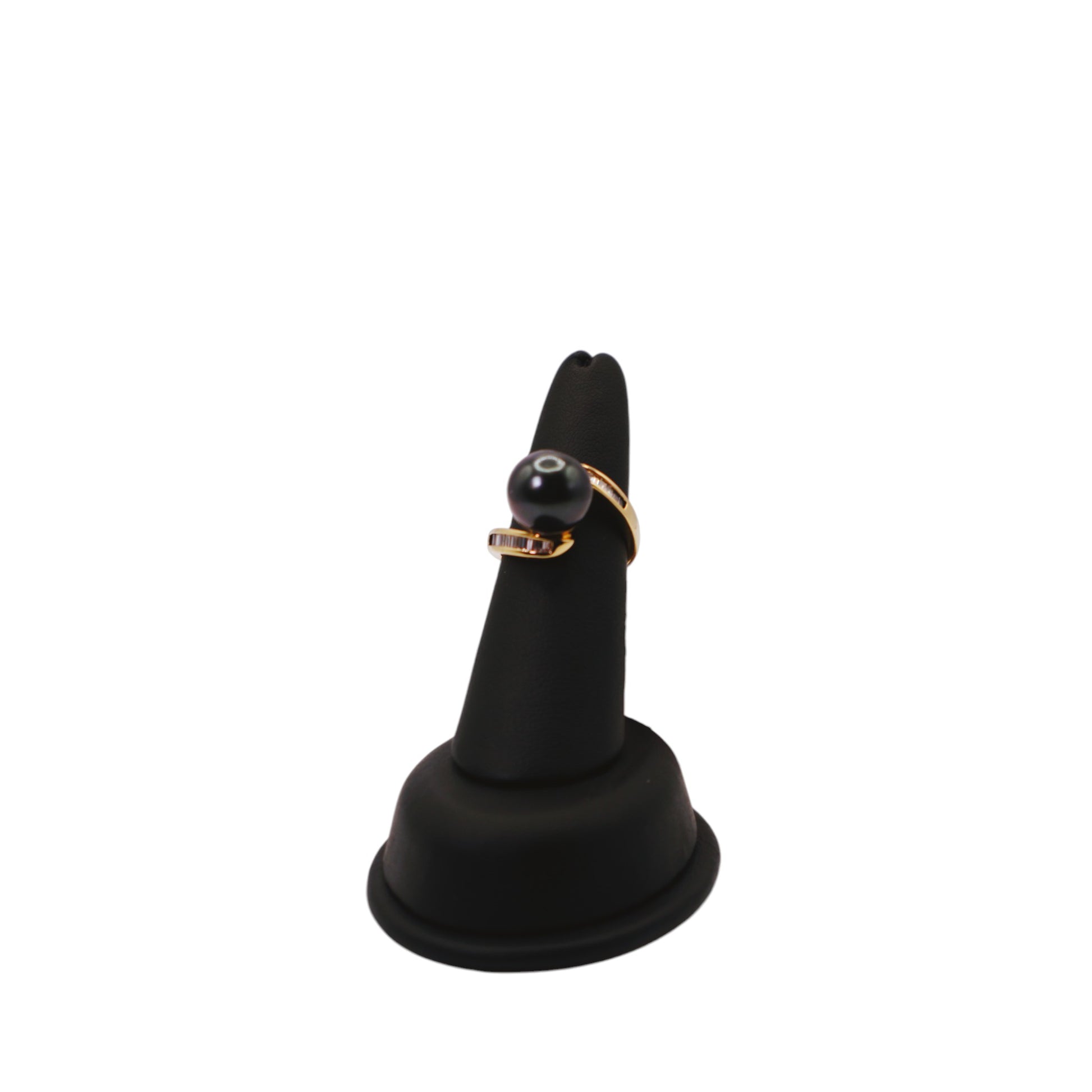 18KT Yellow Gold W/ .50cttw Baguet White Diamond & Tahitian Pearl Ring