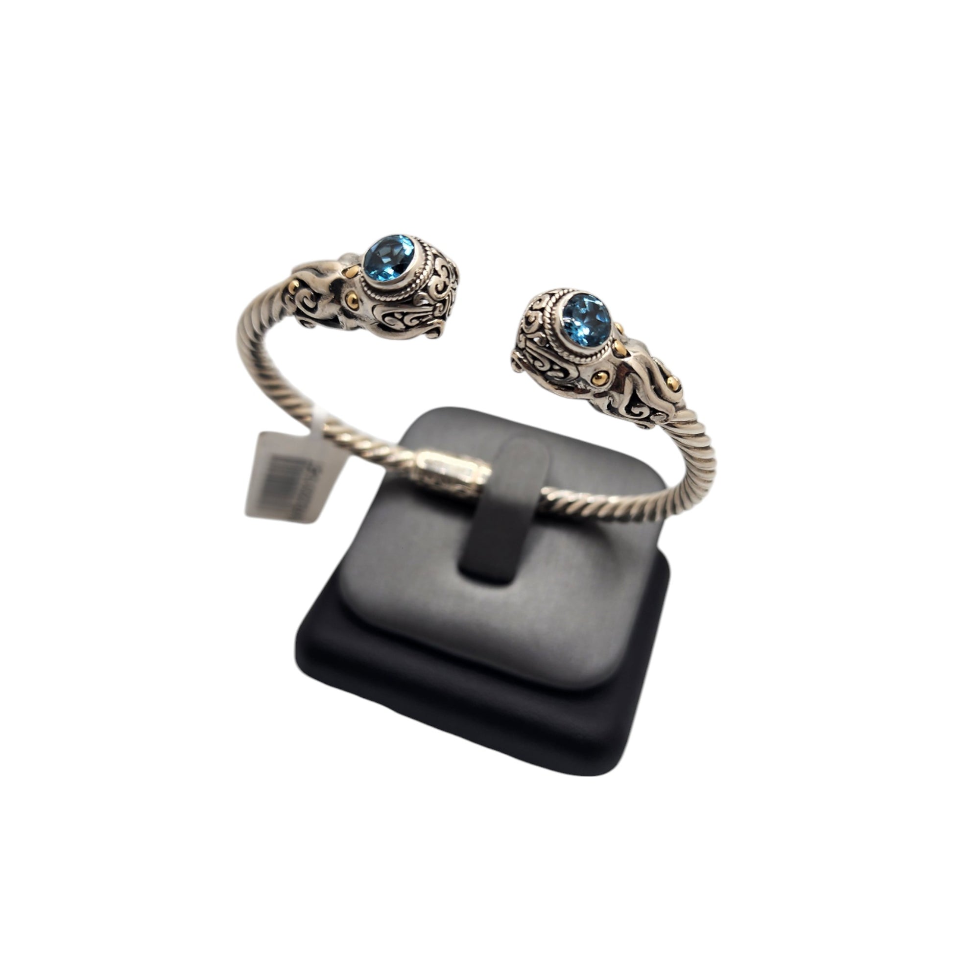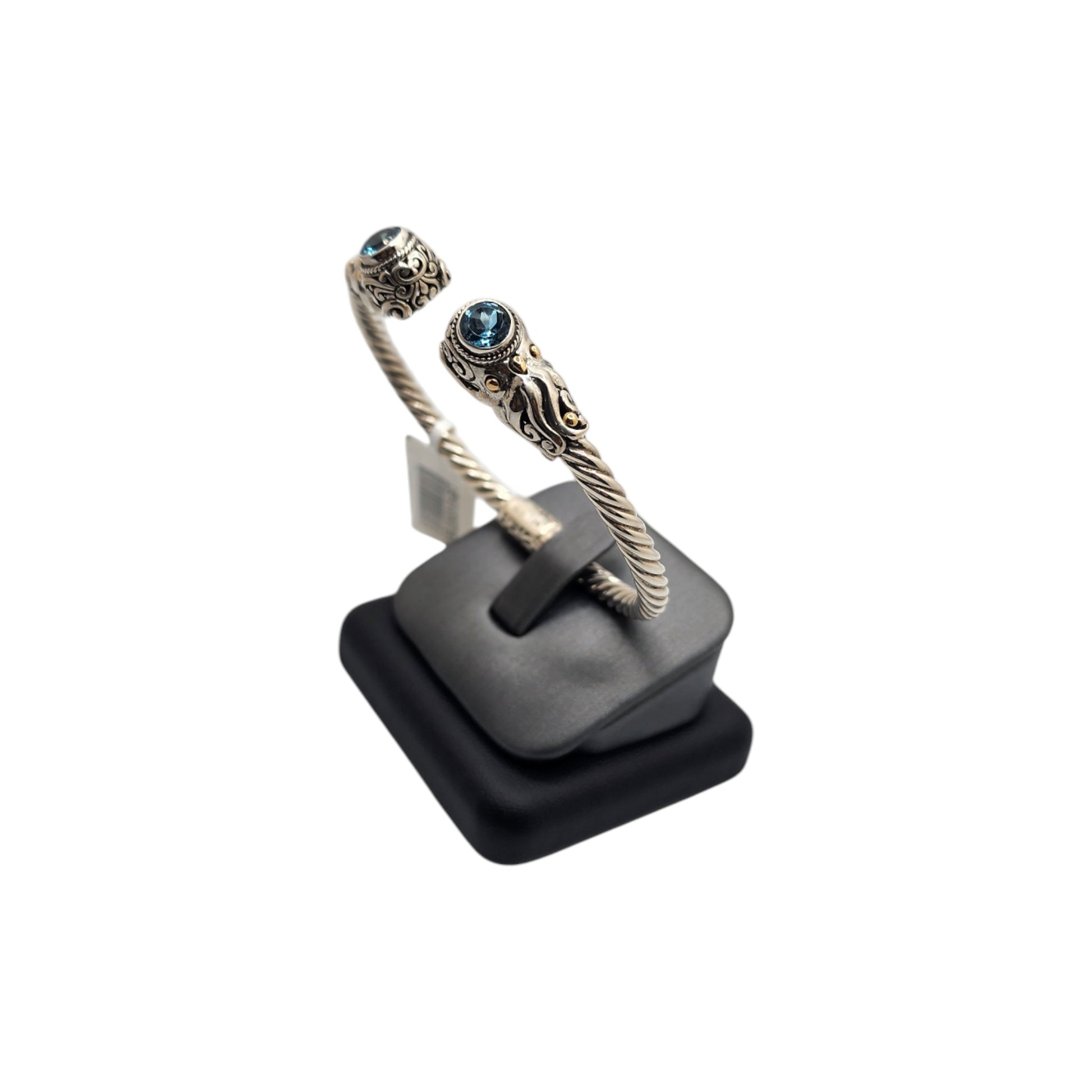 Bali Silver Collection/ 18Kt Octopus Blue Topaz Bali Bangle Bracelet