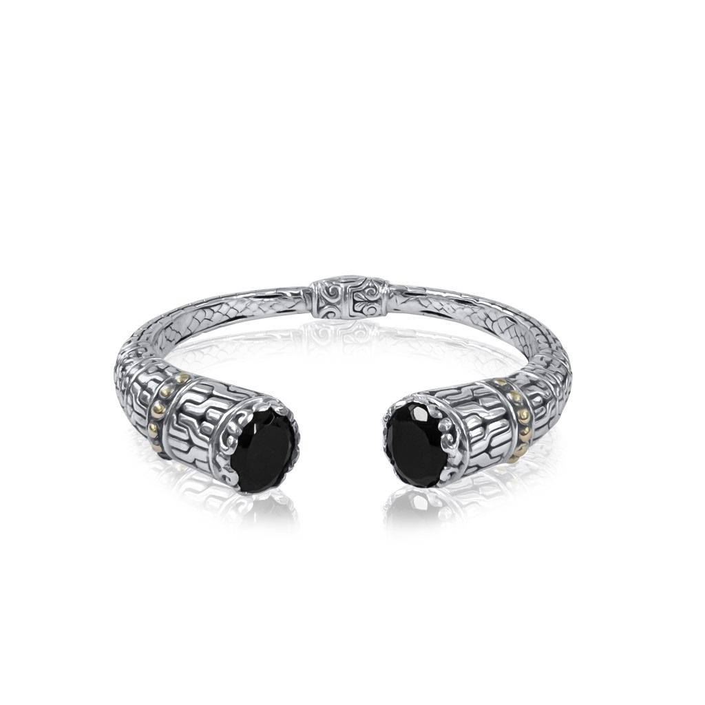 Bali Silver Collection W/ 18KT Curvy Halo Onyx Bali Bangles