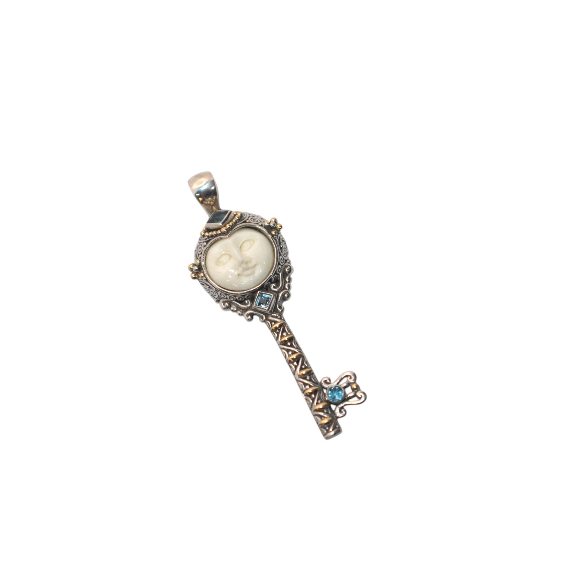 Bali Silver Collection Pendants W/18KT Carded Bone/BL Topaz Key