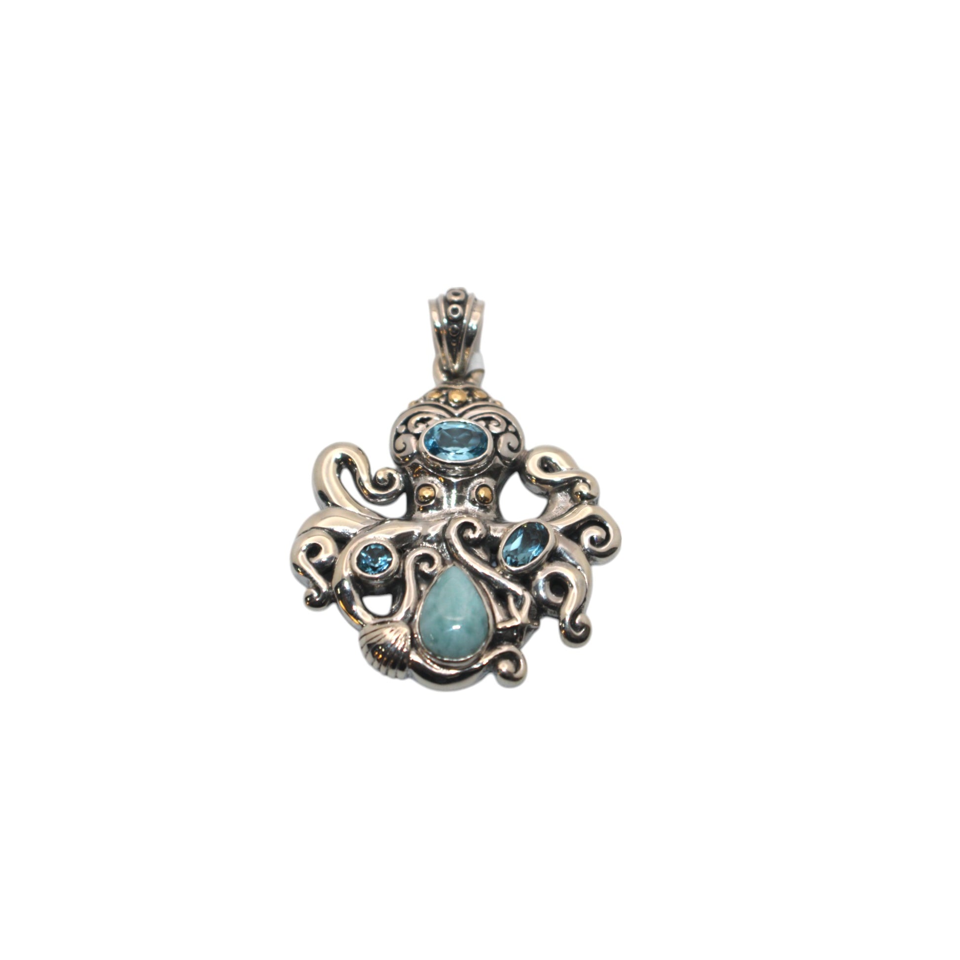 Bali Silver Collection Pendants W/18KT Larimar & Bl Topaz Octopus