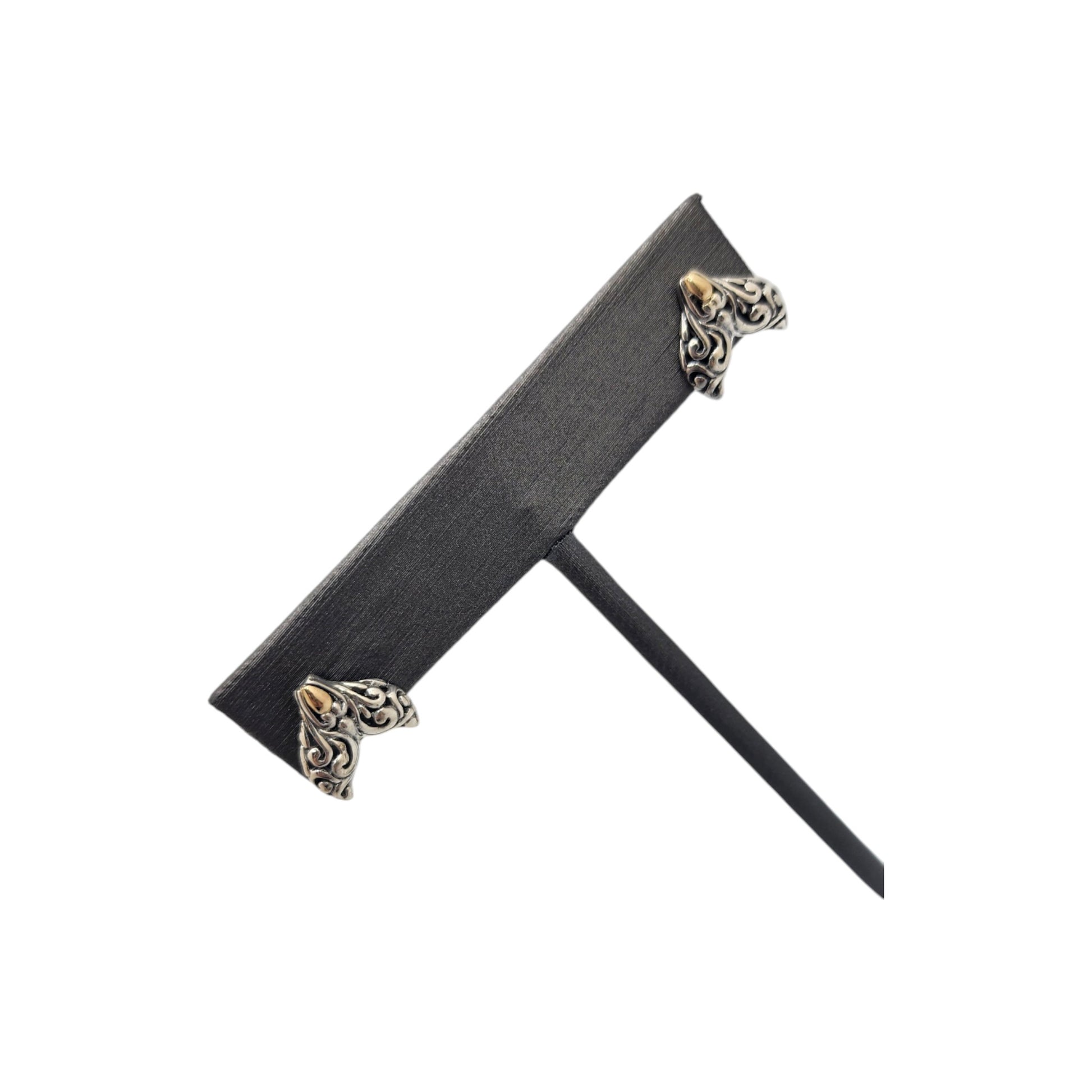 Bali Silver Collection W / 18Kt Swirly Whale Tail Bali Stud Earring