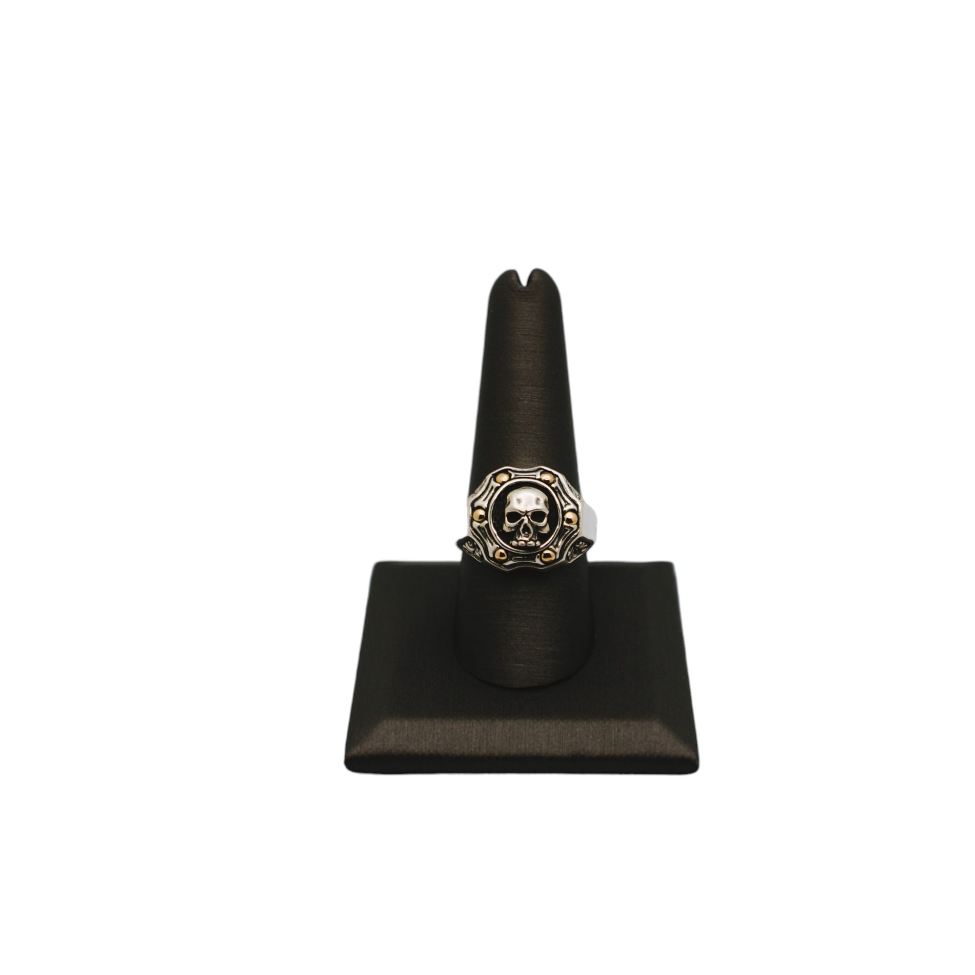 Bali Silver Collection W/18KT Cross Bone Halo Skull Ring
