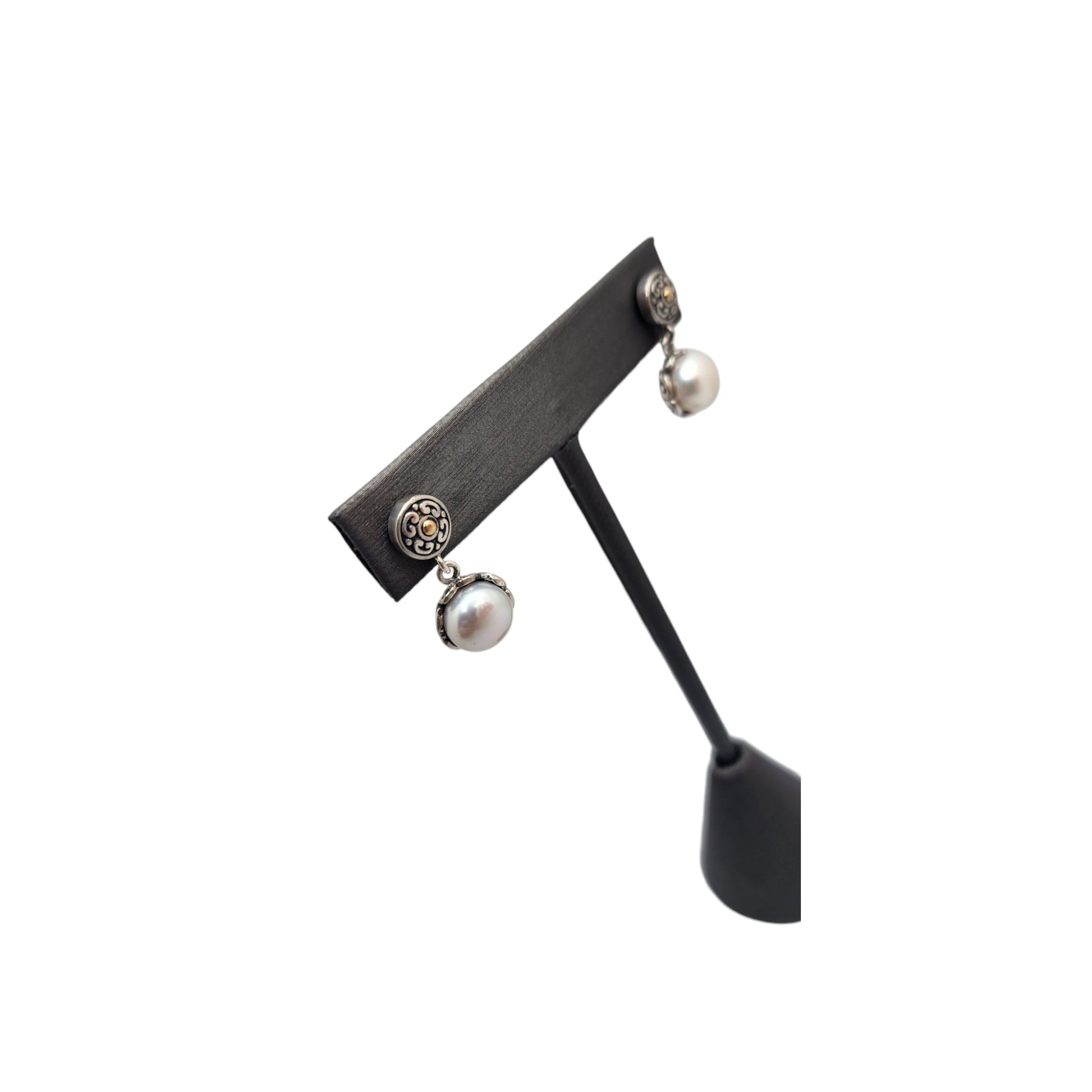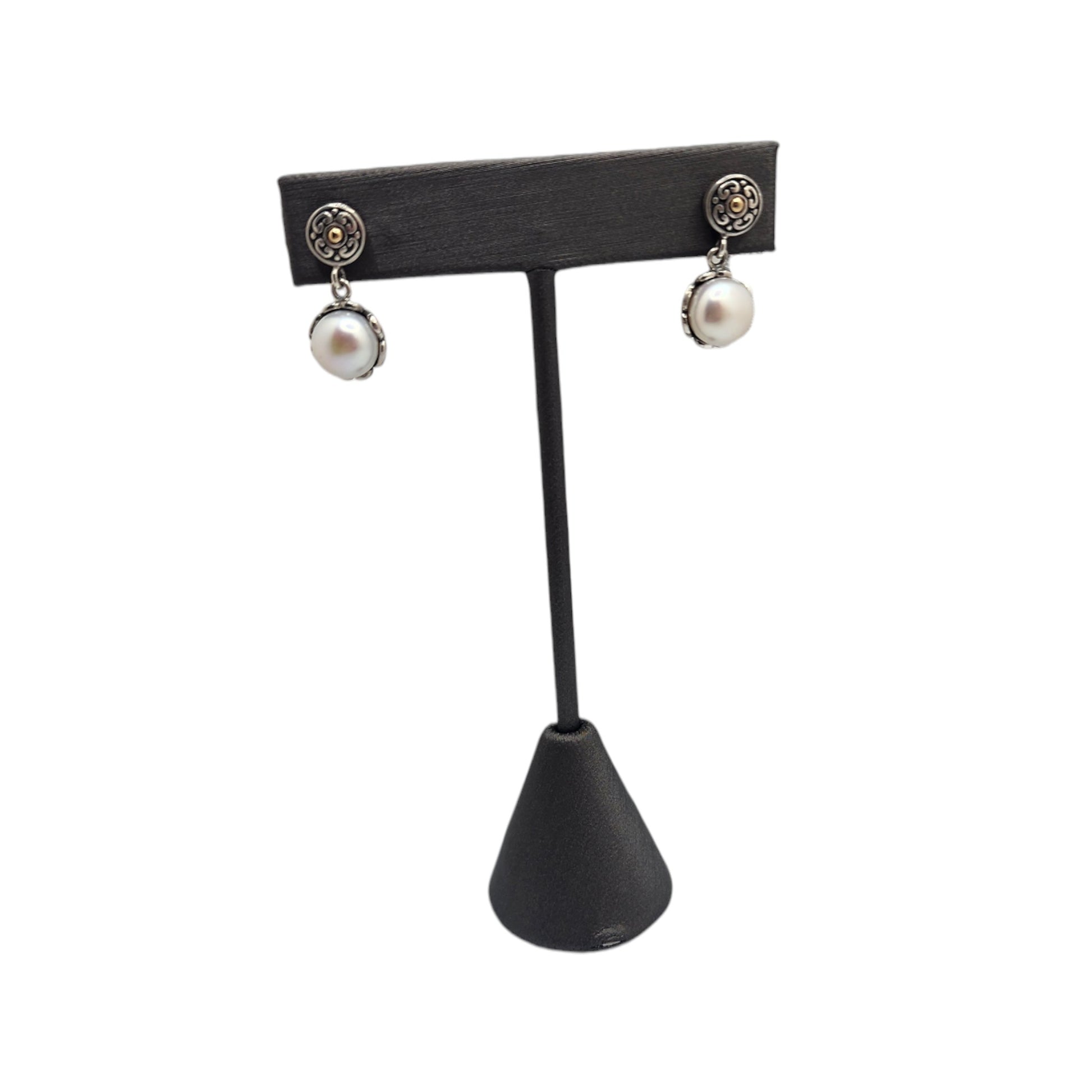 Bali Silver Collection W/ 18Kt FWP Round Dangle Bali Earrings