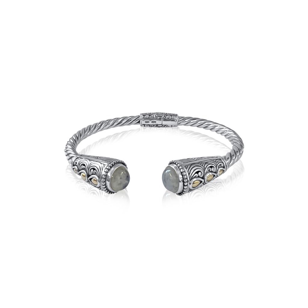 Bali Silver Collection W/ 18KT Moonstone Wave Bali Bangles