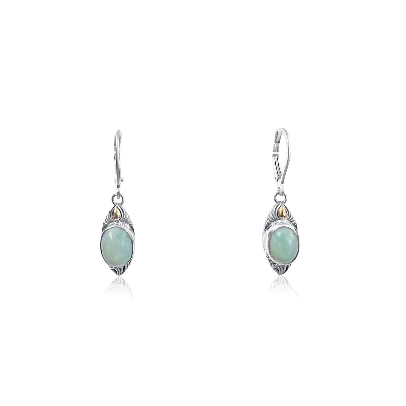 Bali Silver Collection W/18KT Oval Larimar Dangling Earrings