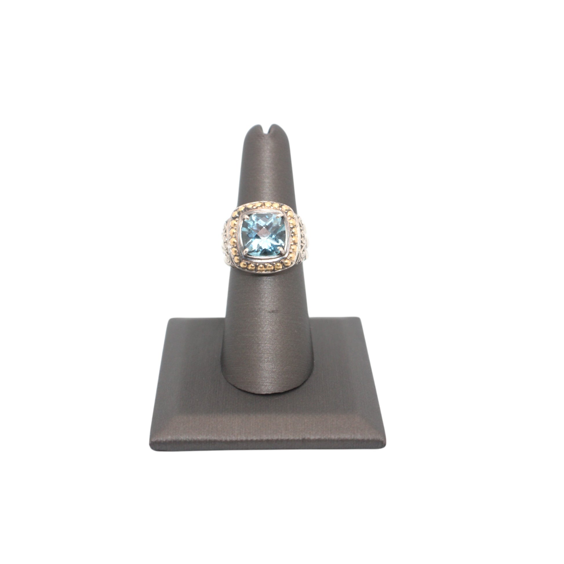 Bali Silver Collection W/18KT Square Blue Topaz Bali Ring