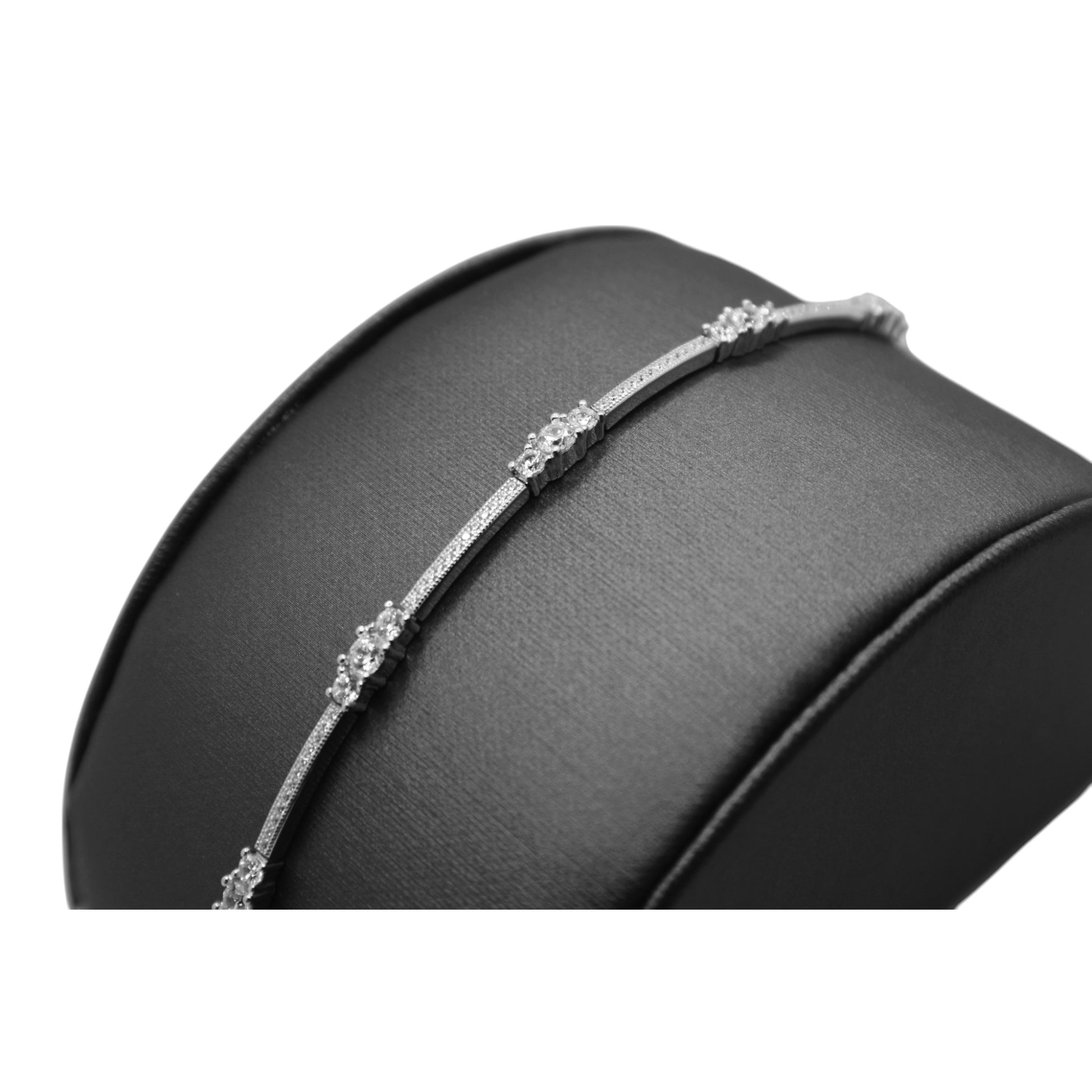 Silver Collection Plat/ White Circle 7.5" W/ 3Cz Station Bracelet