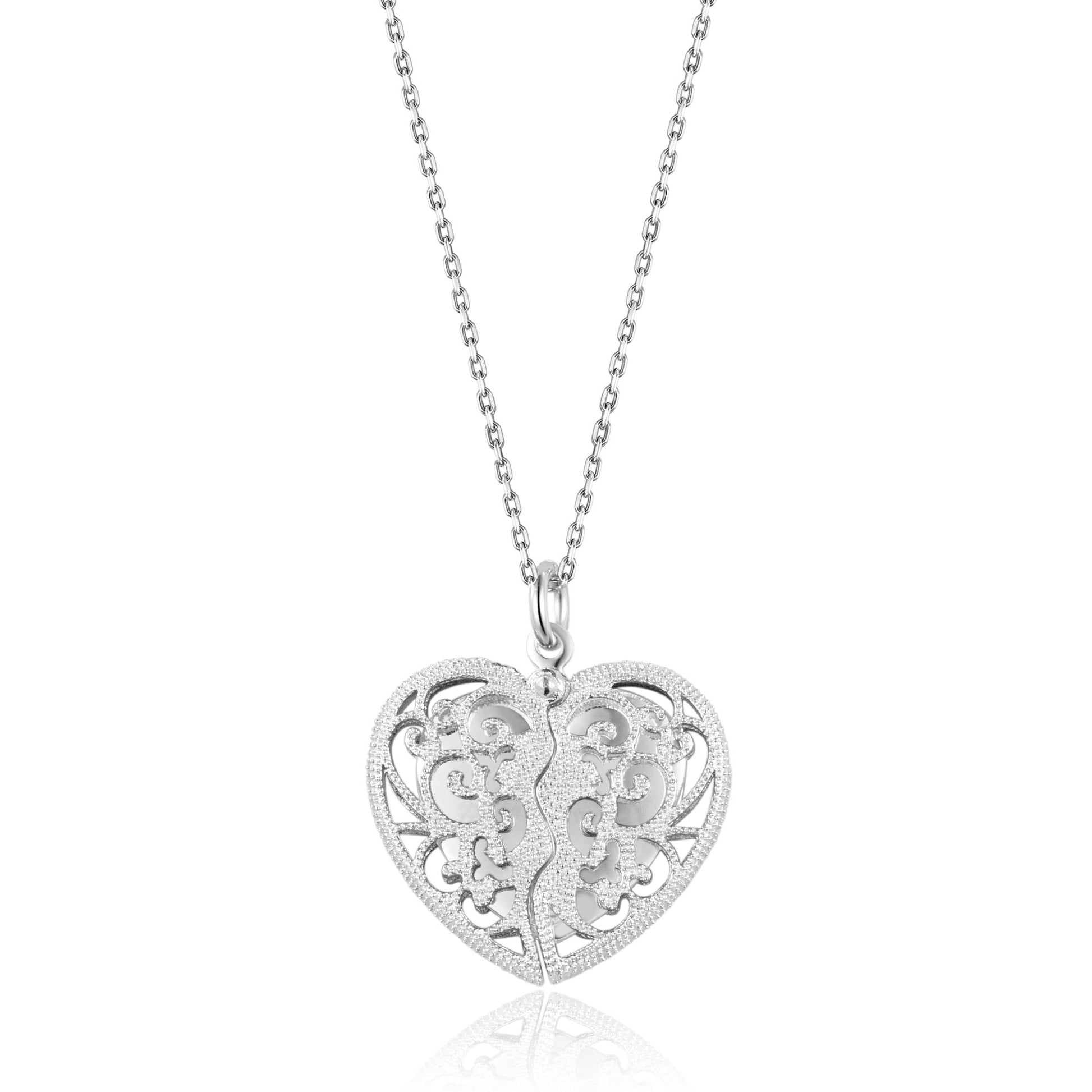 Silver Pendants Collection Hidden Heart W/ .1 Diamon