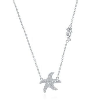 Sterling Silver Beach Life Collection Starfish & Seahorse 18" Pendants.